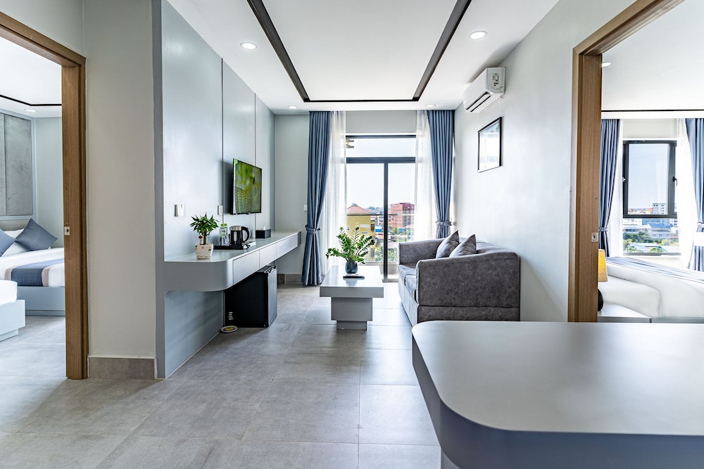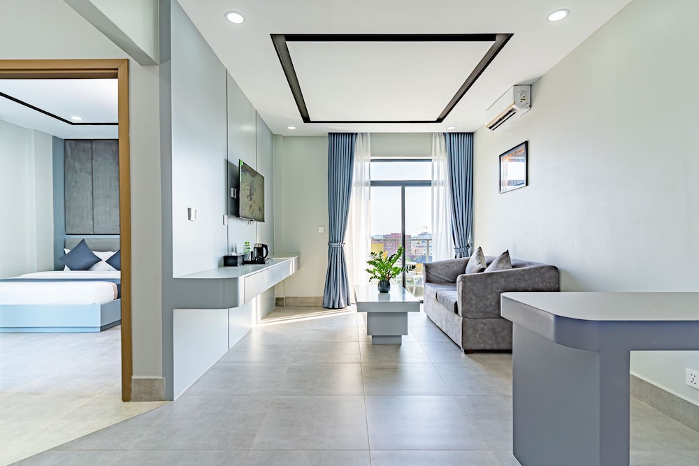 This a brand new hotel in Kampot, it located in City center very closed to Samaki Market, Night Market and any shops around city. they are very friendly, I got well experience at here with comfortable stay and good taste food, special great breakfast at skyline restaurant with the nice view of Kampot city. I am strongly recommend this place.