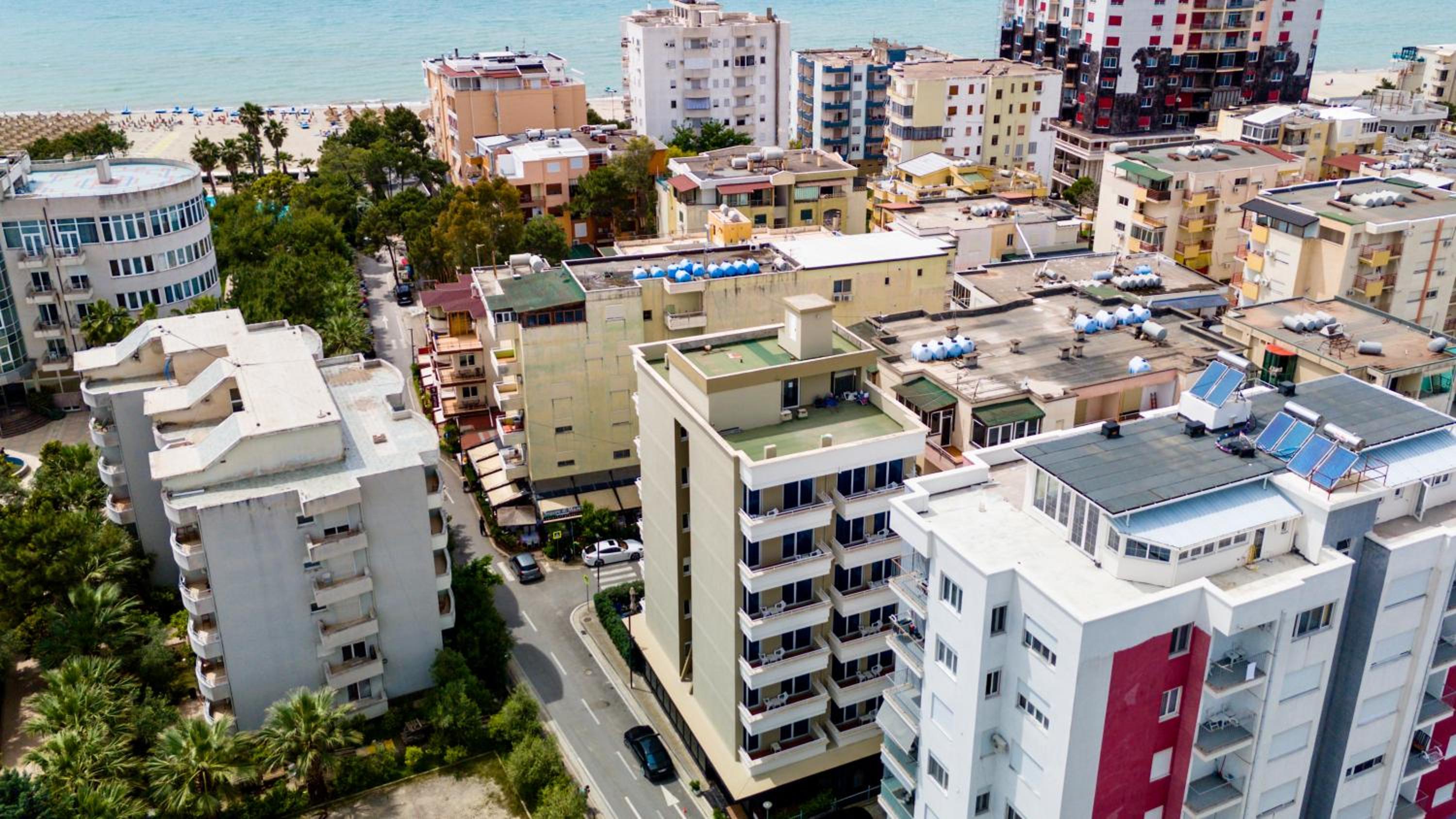 La ubicación a una cuadra de la playa , el mismo hotel tiene un sector reservado en la playa en el cual tienes acceso a quitasol y 2 reposeras. La amabilidad del personas es extraordinaria, nos atendió la recepcionista Kejsi, una niña muy amable y los muchachos del restaurante también muy amables . La habitación estupenda y muy espaciosa con balcón .