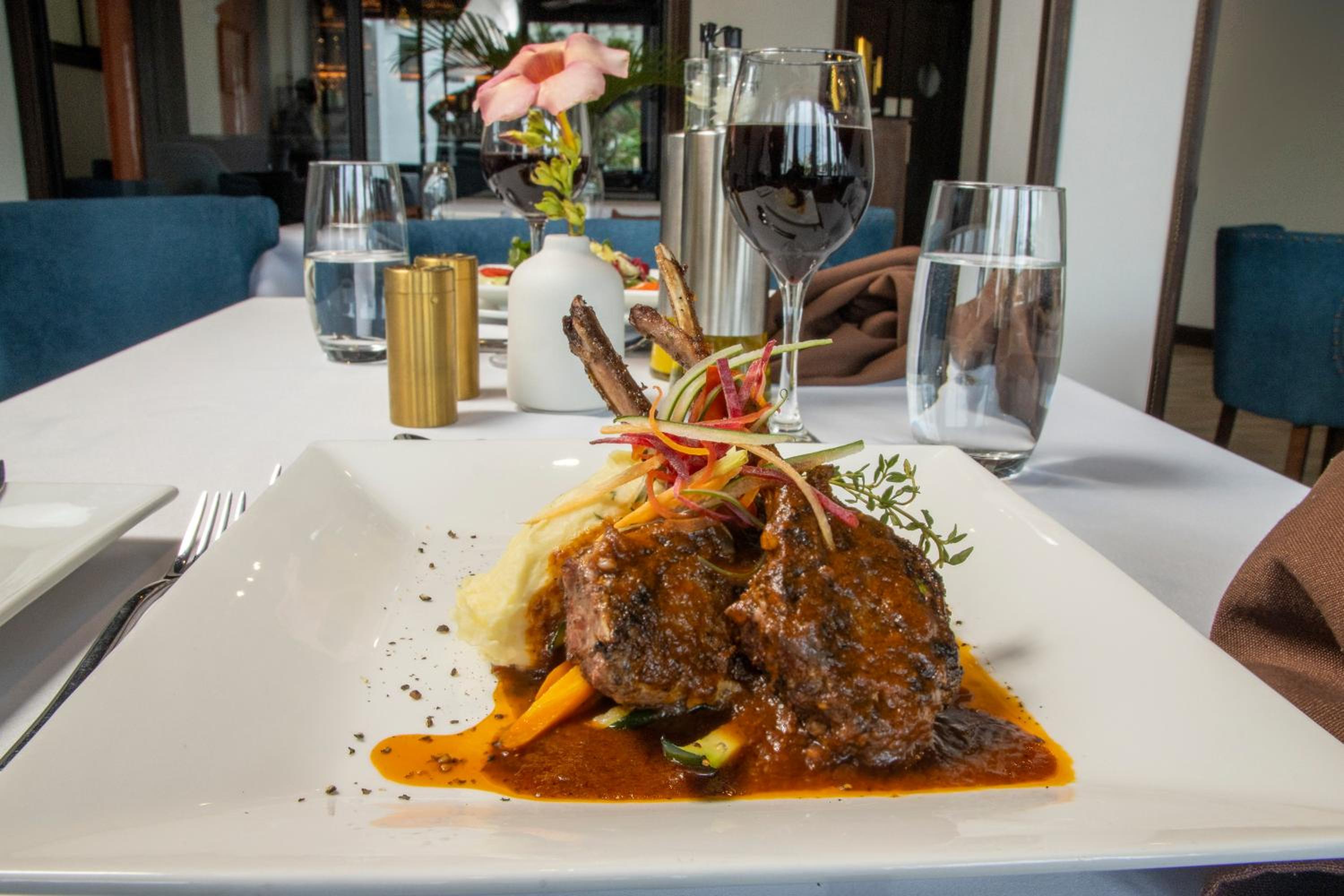 I liked most things about the property, the room was nice, however I booked a junior suite to accommodate 4 adults but it would have been more comfortable for 2 adults and 2 children because the space was a bit cramped. The food was quite good and the staff was quite friendly and professional. the hotel gave a nice comfortable feel overall. I think a game room with a pool table and a dart board etc, a TV etc would enhance the experience in my opinion. The pool is nice but it is untiled and the pool area needs more shade from the sun. Overall I was pleased with the experience and I would definately stay there again.