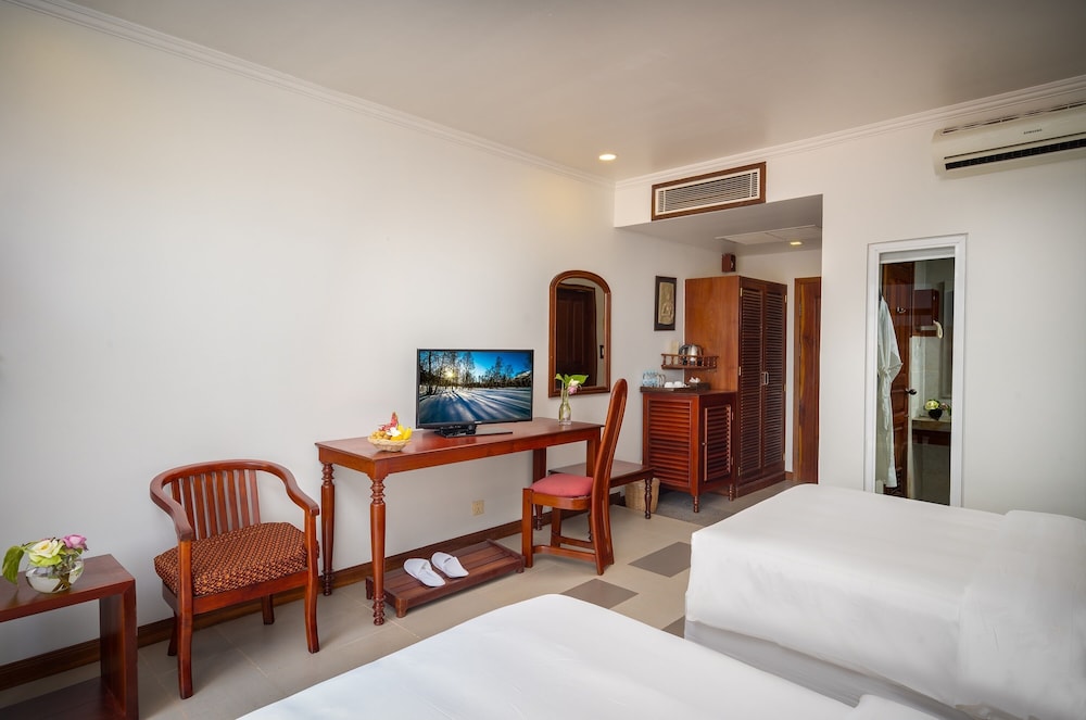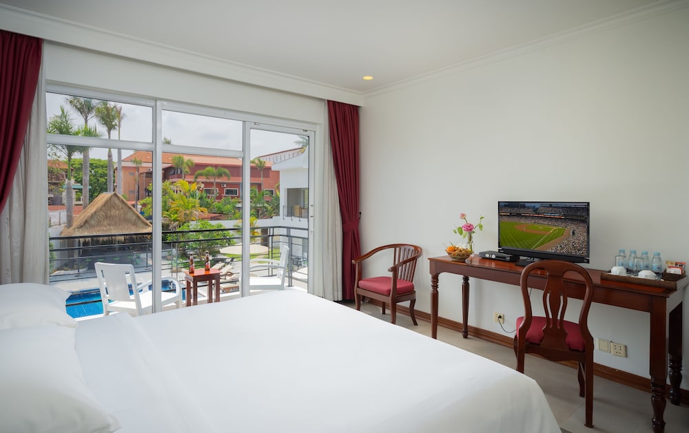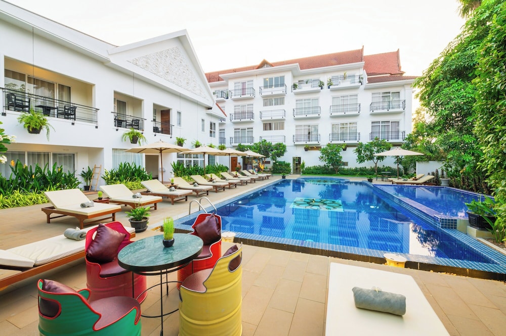 Lovely calm hotel in Siem Reap right across the street from the museum and next to a large modern supermarket. Nice pool area and friendly staff. Wish I had booked more nights at this hotel.