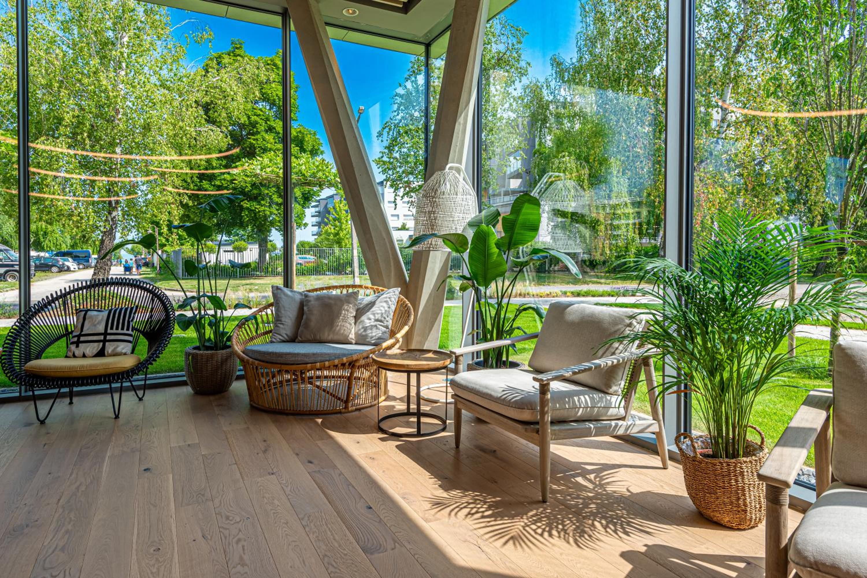 Great design, attention to details, clean, very comfortable beds, high-end/premium materials used (Gessi shower heads in the SPA area). Good value for money and a nice location 1 minute away from the lake.