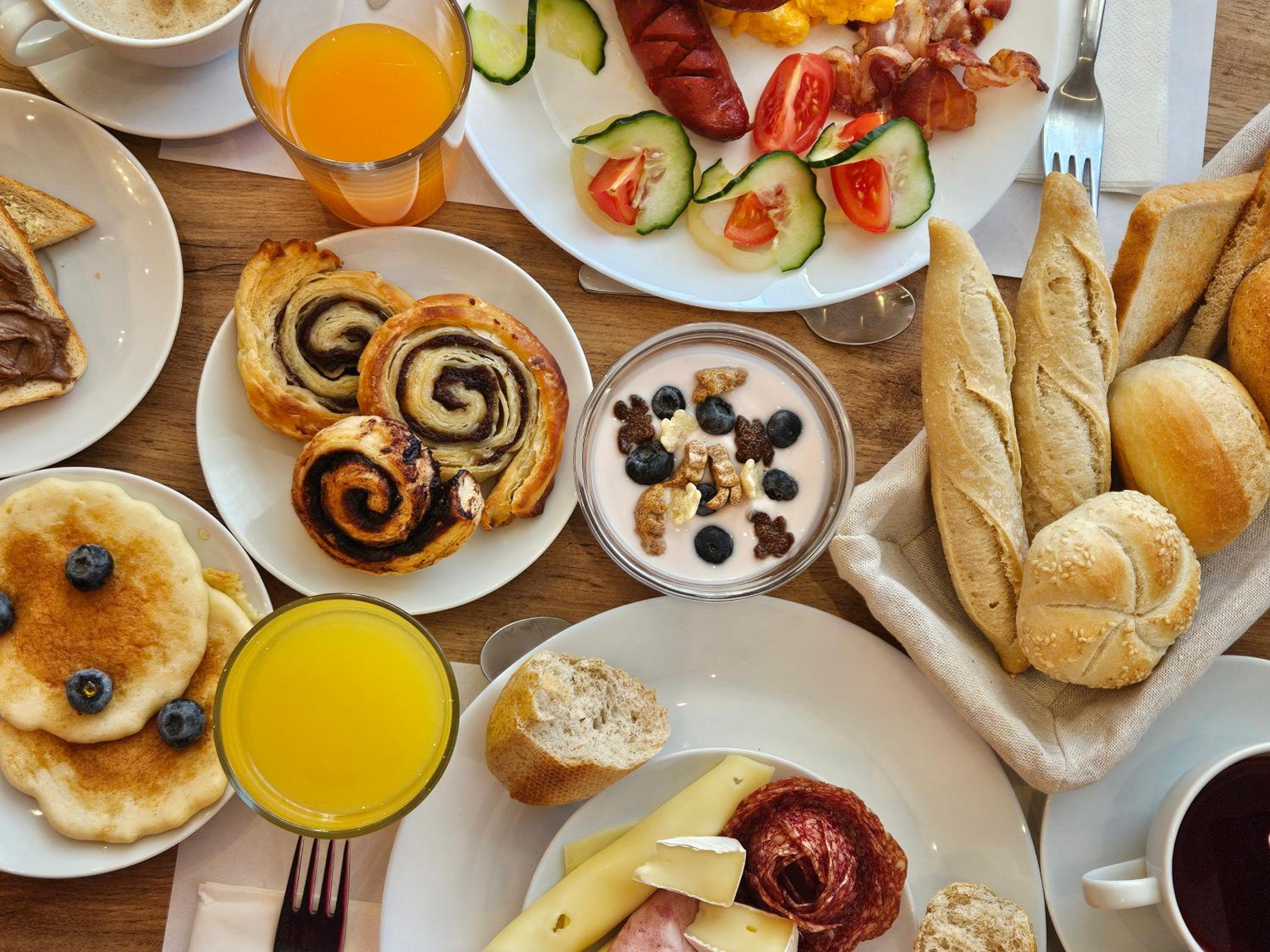 reggeli kínálat - bár finom és sokféle volt, viszont - hamar elfogyott, később pedig nem pótolták.