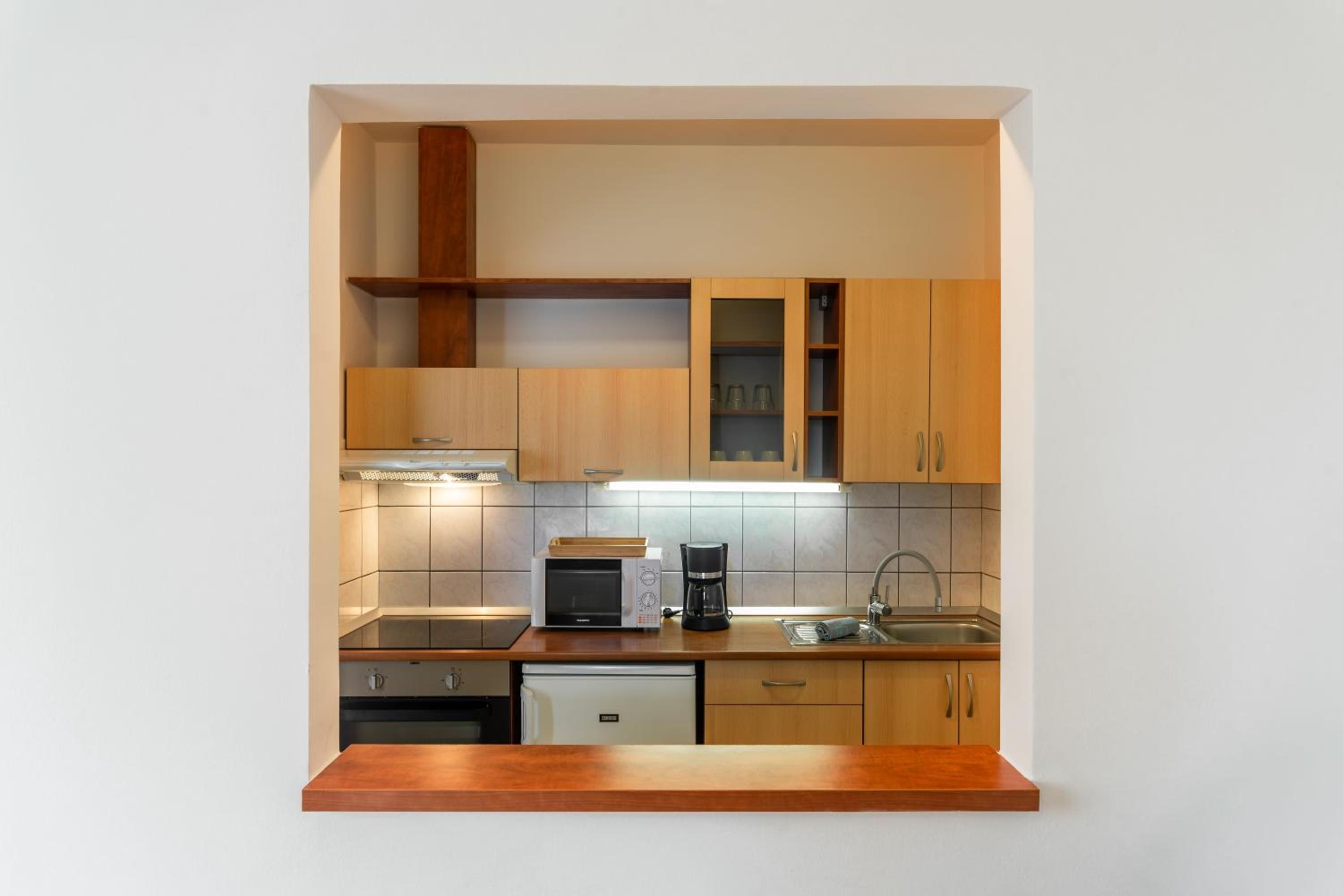 Hezký prostorný apartmán s dostatečně vybavenou kuchyňkou, příjemný personál, skvělá snídaně. Hotel měl dětskou hernu, venkovní hřiště pro děti, kulečník, venkovní posezení aj.