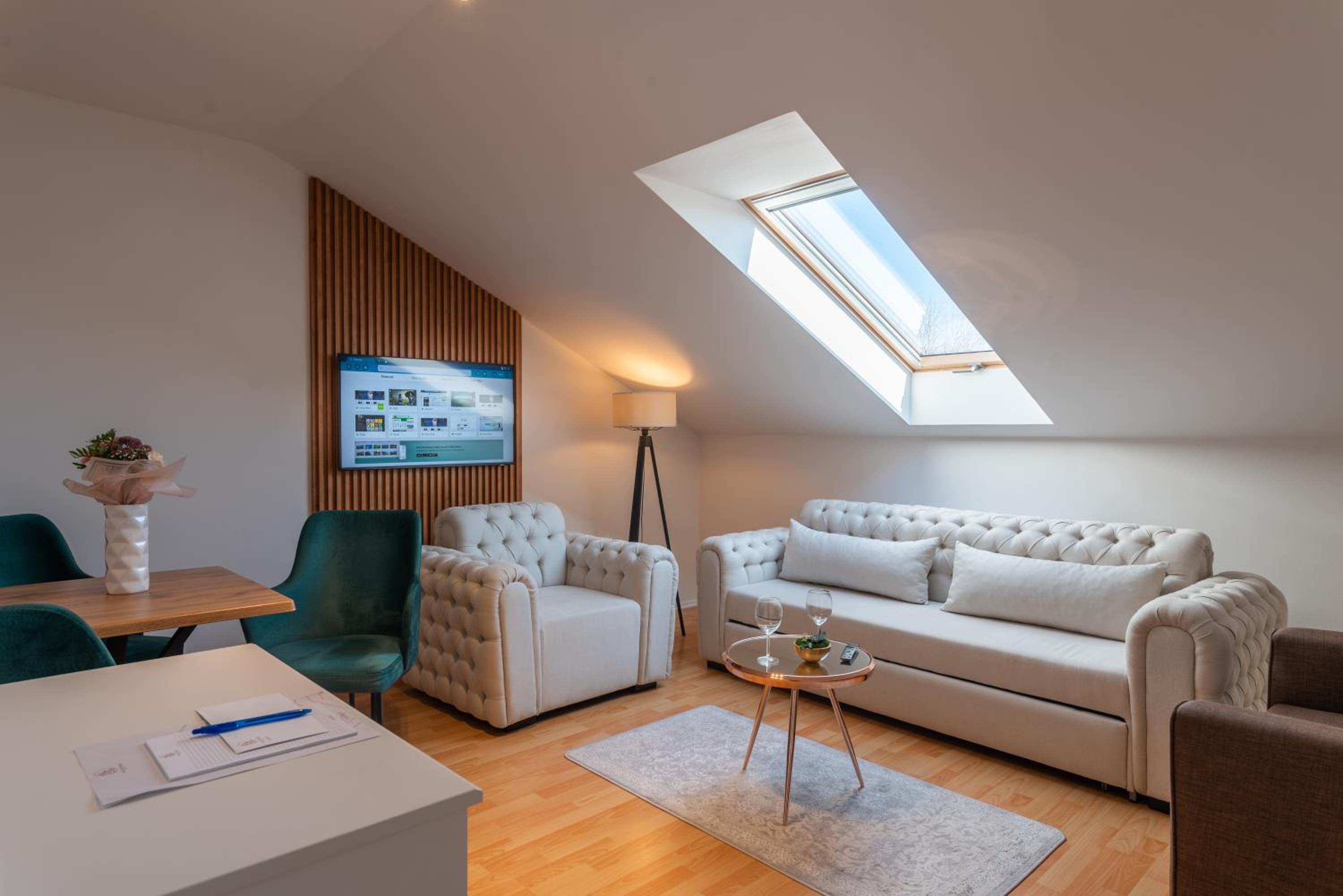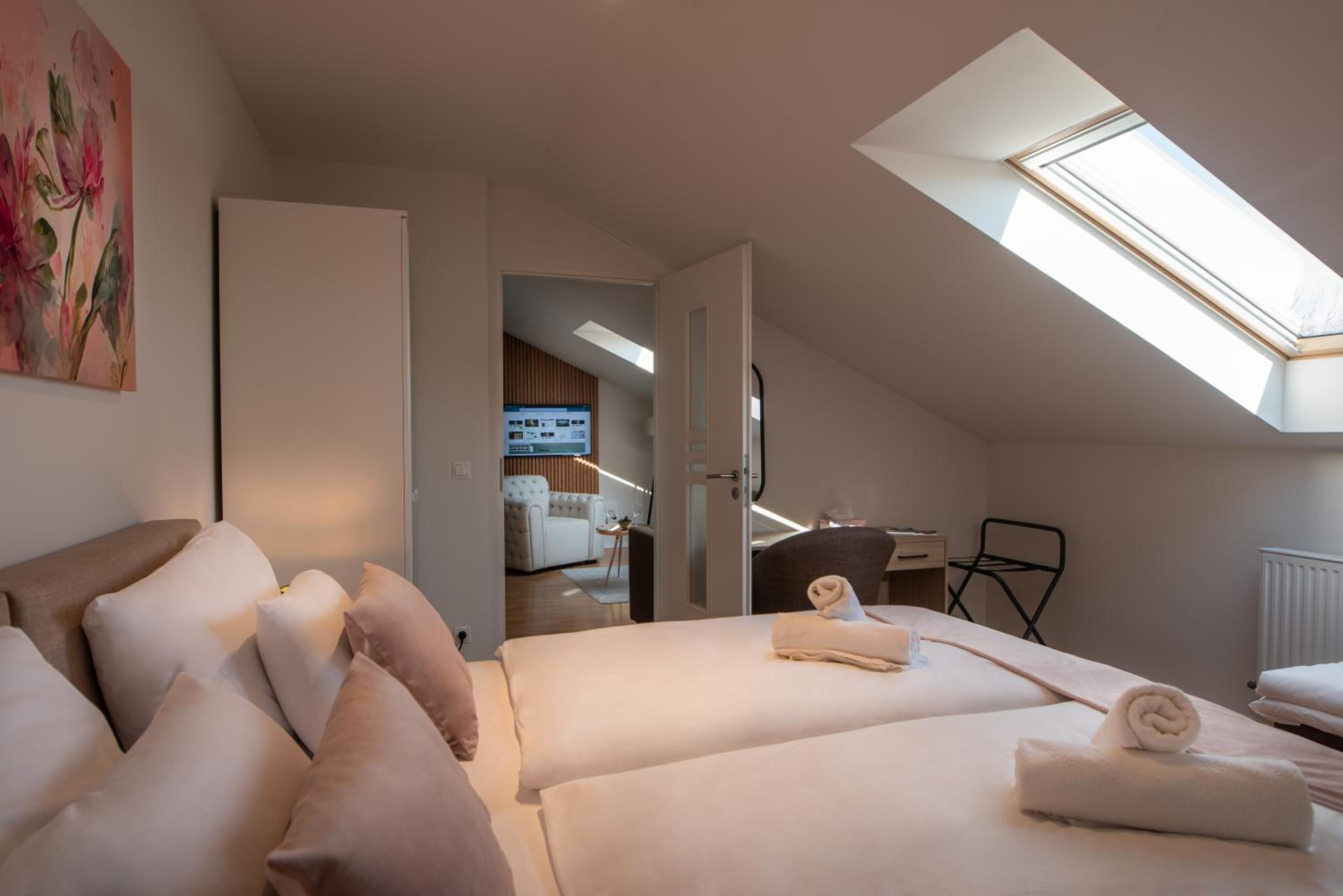 Líbilo se zařízení posilovny biliard vše čisté a funkční v suterénu hotelu. Dále možnost využití výtahu. Velmi pěkné apartmány v podkroví. Dobré jídlo možnost využití baru. Určitě se vrátíme. Velmi vynikající spokojenost z pobytu. Termály asi 15 minut procházkou. Parkování v objektu super zdarma.