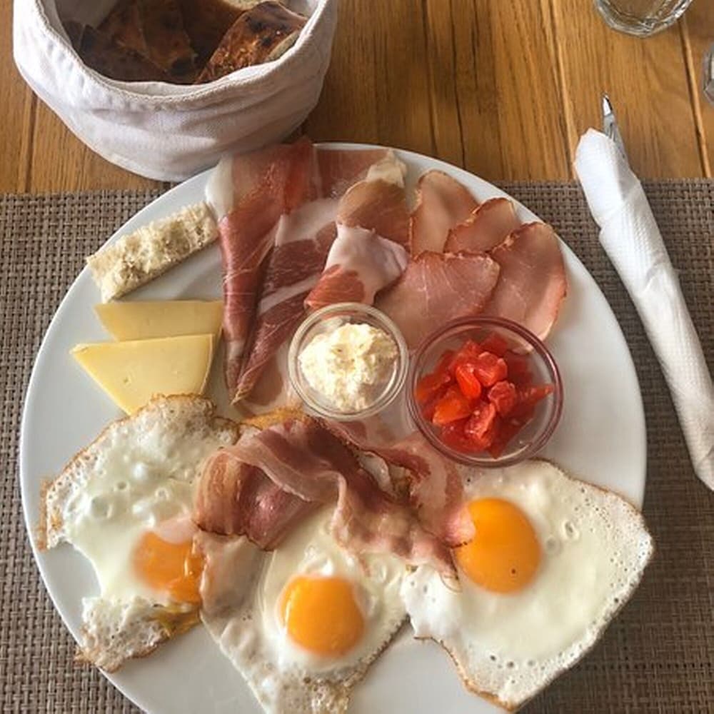 The breakfast was ok and sheet was given to us on arrival of what we could order from the Riva bar next door, the options were ok bt as we were on holiday you’d expect to have what we wanted like fresh juices and extra coffees, but no this was quite strictly although the staff were friendly in the bar…you got to the Riva bar through the unmaintained and scruffy exterior a public carpark.