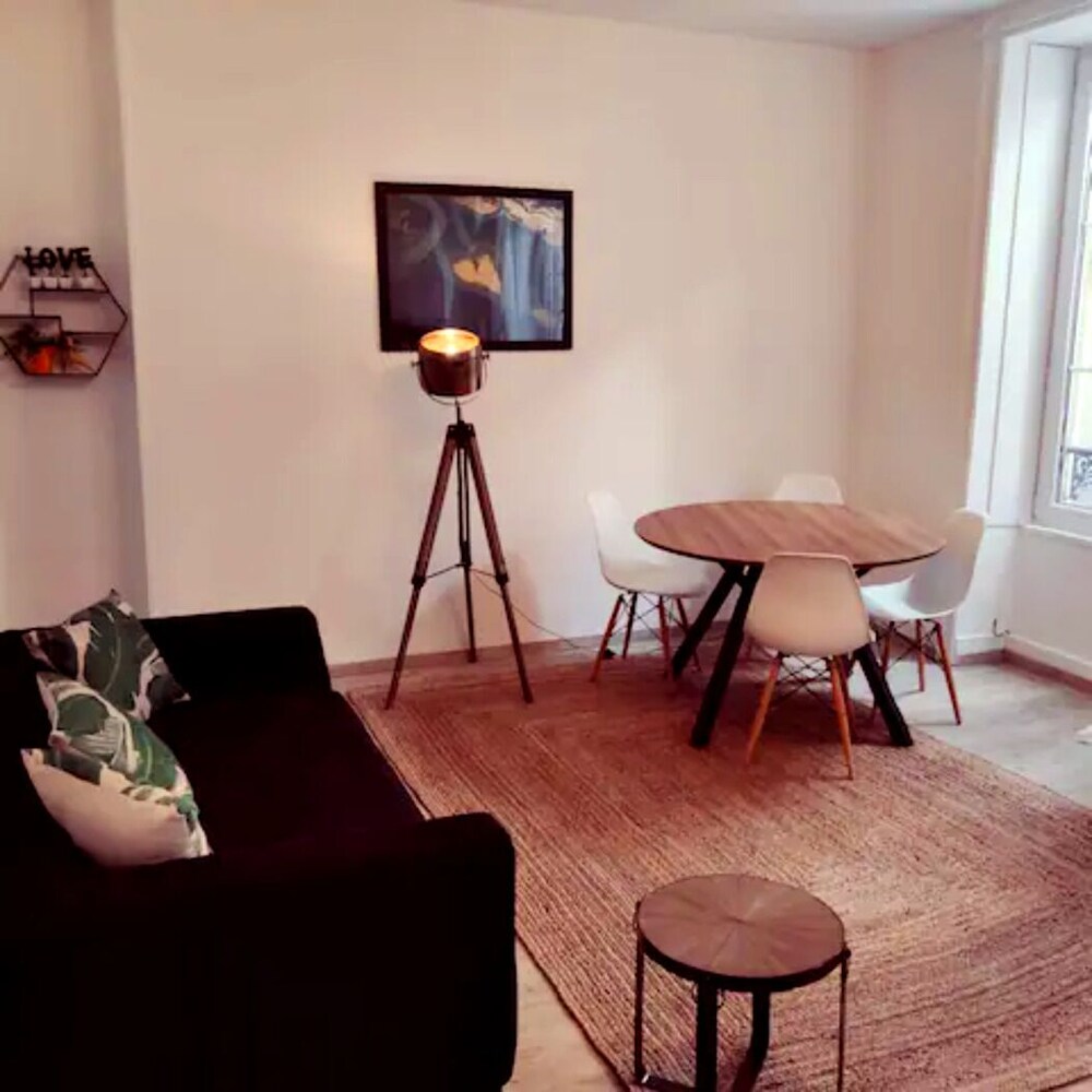 Bien placé, des restaurants à proximité, parking payant à 2 min à pied. Appartement bien équipé mais aucune insonorisation, pas de réception communication par mail ou SMS.