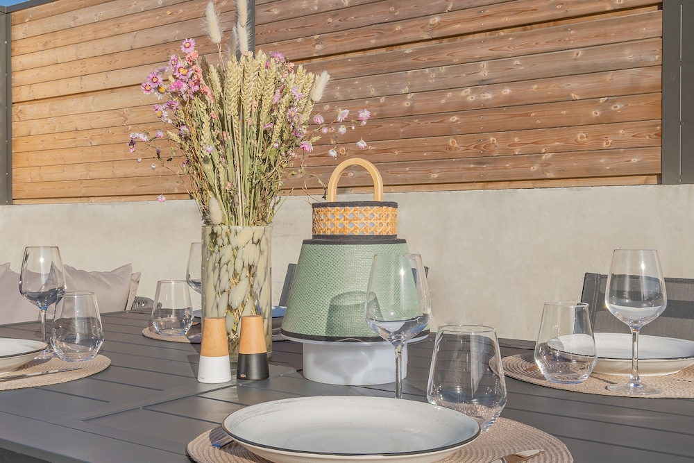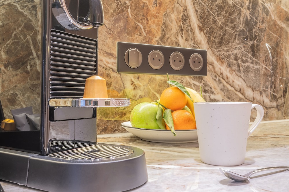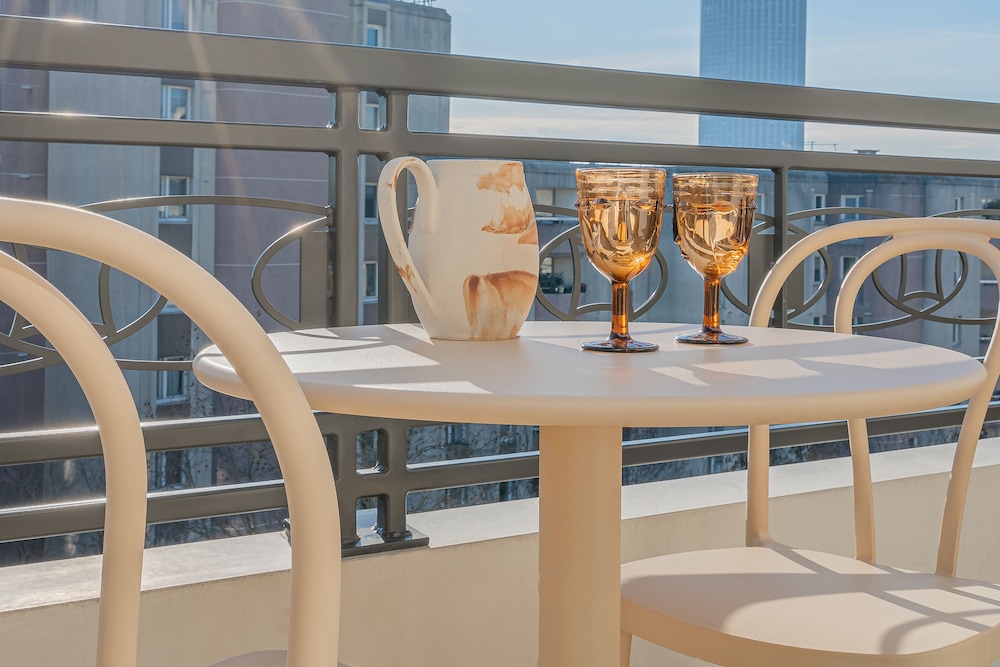 Beautiful apartment with all the amenities - AC, extra towels, cups, glasses, plates, we were even given water and madeleines upon arrival.
