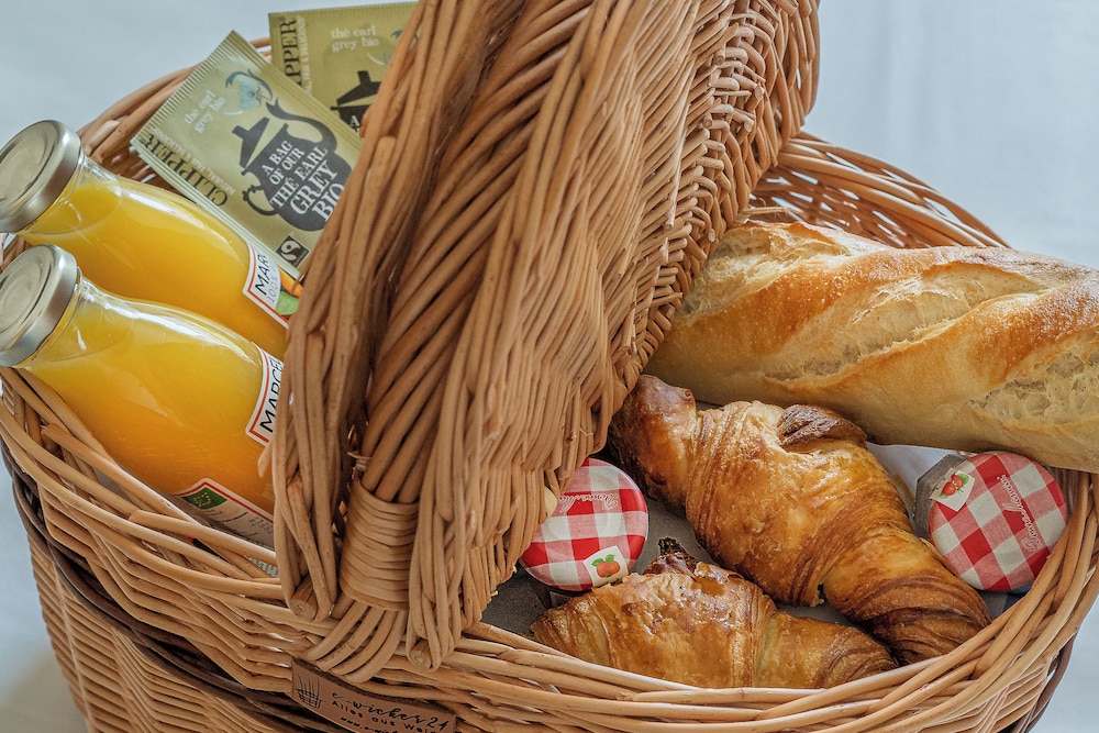Very nice hotel and staff. LocatiCoffee maker in the lobby is great benefit of staying in this hotel. I wish it was available overnight too. Wine in the room was a nice gift. Some guests mentioned about the basket gift but we didn’t get that. I wish cleaning service was at least every other day instead just once in the middle of our week stay there. Staff was amazingly kind and helpful. Planning to be back.