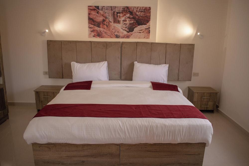 This place is amazing. Very clean room with comfortable matress and lots of place to put your clothes. This is a brand new hotel so in very good condition. The breakfast is big and tasty and you also have the view on the valley while you eat! The owner is very caring about his guest and do everything to make you feel like family. He was a guide in Petra and he helped us a lot with our itinerary, explain us historical facts. A real VIP experience! Also a big plus is they offer lunch box for yours days in Petra lots of food sandwiches with fruits, snacks, juice and bottle of water for a very cheap price. The diner are also very good and authentic, go for it you won’t regret it!