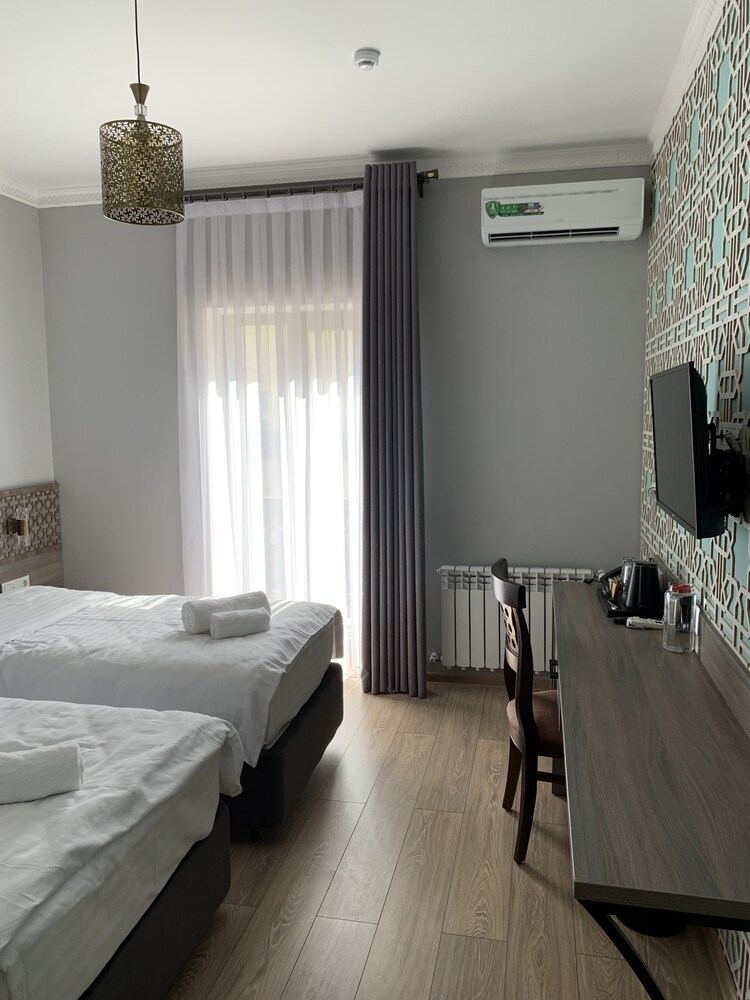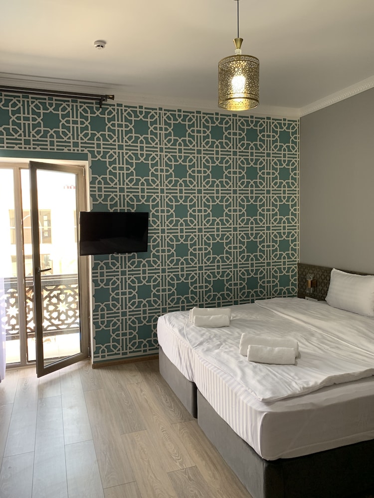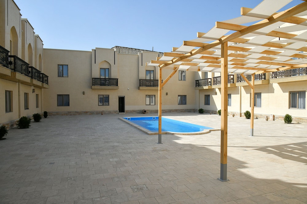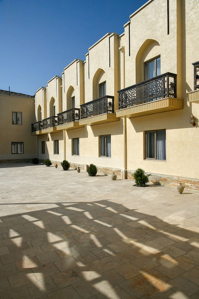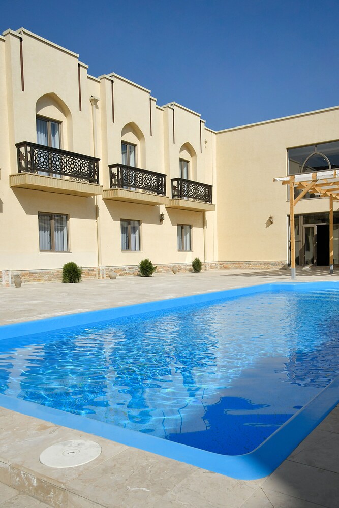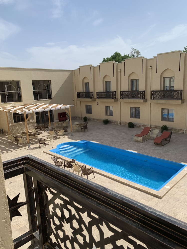 Hôtel neuf, très bien situé (en face de la nécropole), promenade sympa pour rejoindre le registan (15mn). Chambre triple très belle, confortable et très grande, bien décorée ! Personnel très sympa, serviable, au petit soin! Piscine super agréable et propre. Petit déjeuner bon et varié (crêpes!). Le seul point négatif est que la clim pour la grande chambre triple est trop faible les jours très chaud nous le recommandons vivement, c est le meilleur hôtel de notre périple!