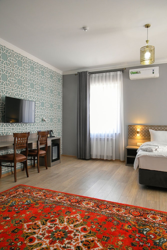 The hotel is in an excellent location. Right opposite one of the major sites in Samarkand and it's a 5 minutes walk to the bazaar and 15 minutes walk to the Registan. The staff are all friendly and polite. The courtyard around the pool area is lovely to sit and enjoy some downtime. The room is spacious and clean.