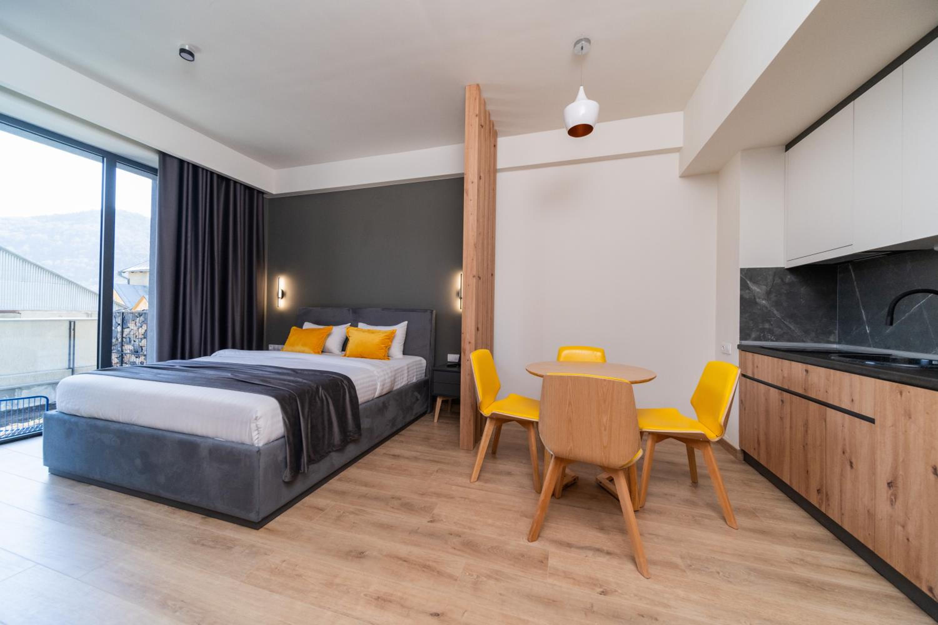 Коттедж, который мы сняли, был великолепен. Два этажа, кухня, 3 ванные комнаты - все идеально. Чисто, уютно, можно готовить свою еду, в холе стоит телевизор, на котором вы включили караоке и наслаждались вечером. Спа был просто потрясающий, все комнаты, все виды саун, комнат для ингаляций и прочее - хотелось повторять все снова и снова! Читый дилижанский воздух, горы, просто сказка!