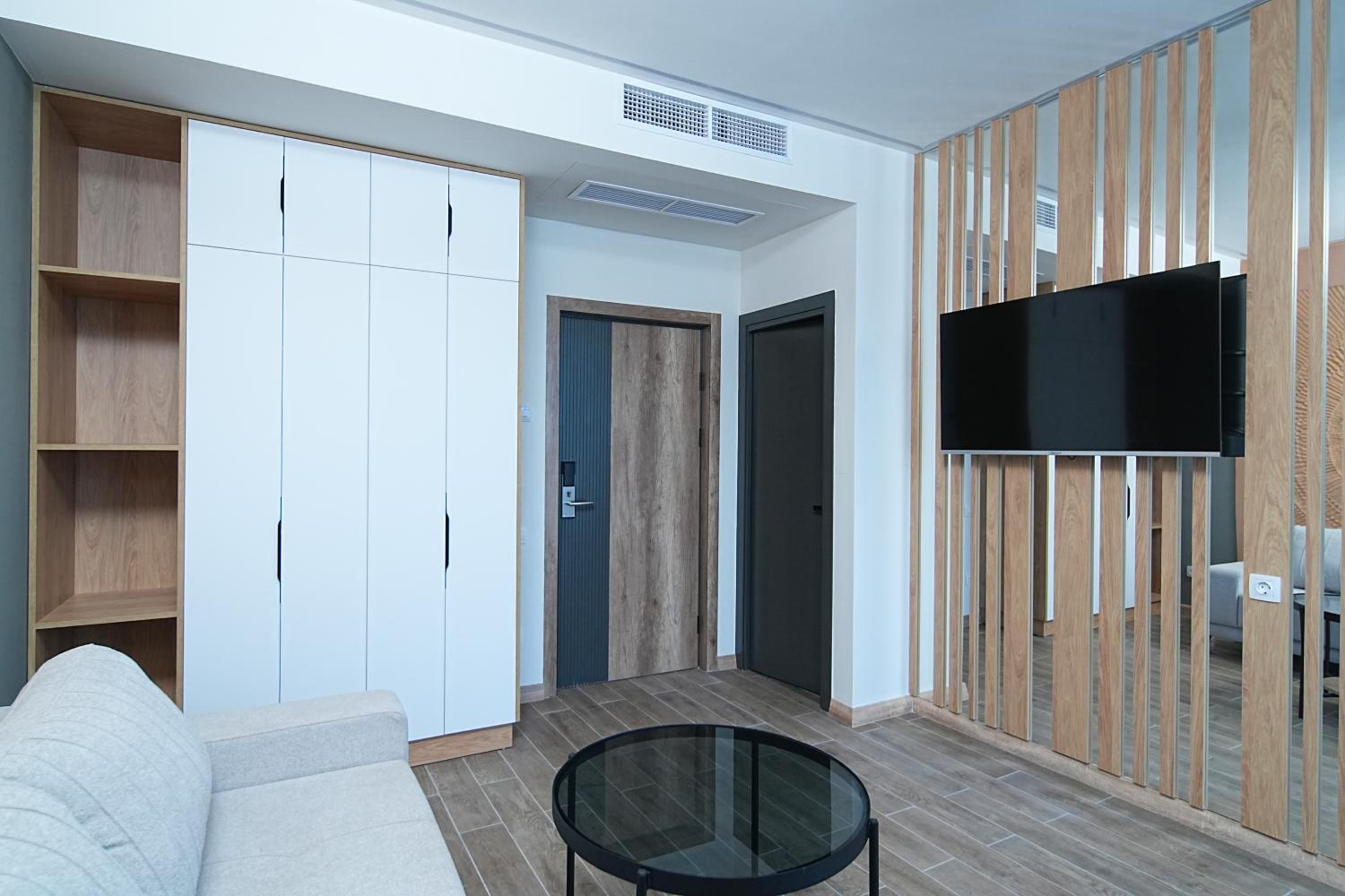 Апартаменты с кухонной зоной предполагают наличие более функционального холодильника. В нём располагался бар. Места для хранения продуктов не было, да и он вовсе не холодил. Приходилось некоторые продукты выносить на улицу (благо температура воздуха была низкой, хотя это не решило в полной мере вопроса сохранности некоторых продуктов, да и местные кошки оказались проворными…). Поэтому многое пришлось выбросить… Когда будет устойчивая тёплая температура… (без комментариев).