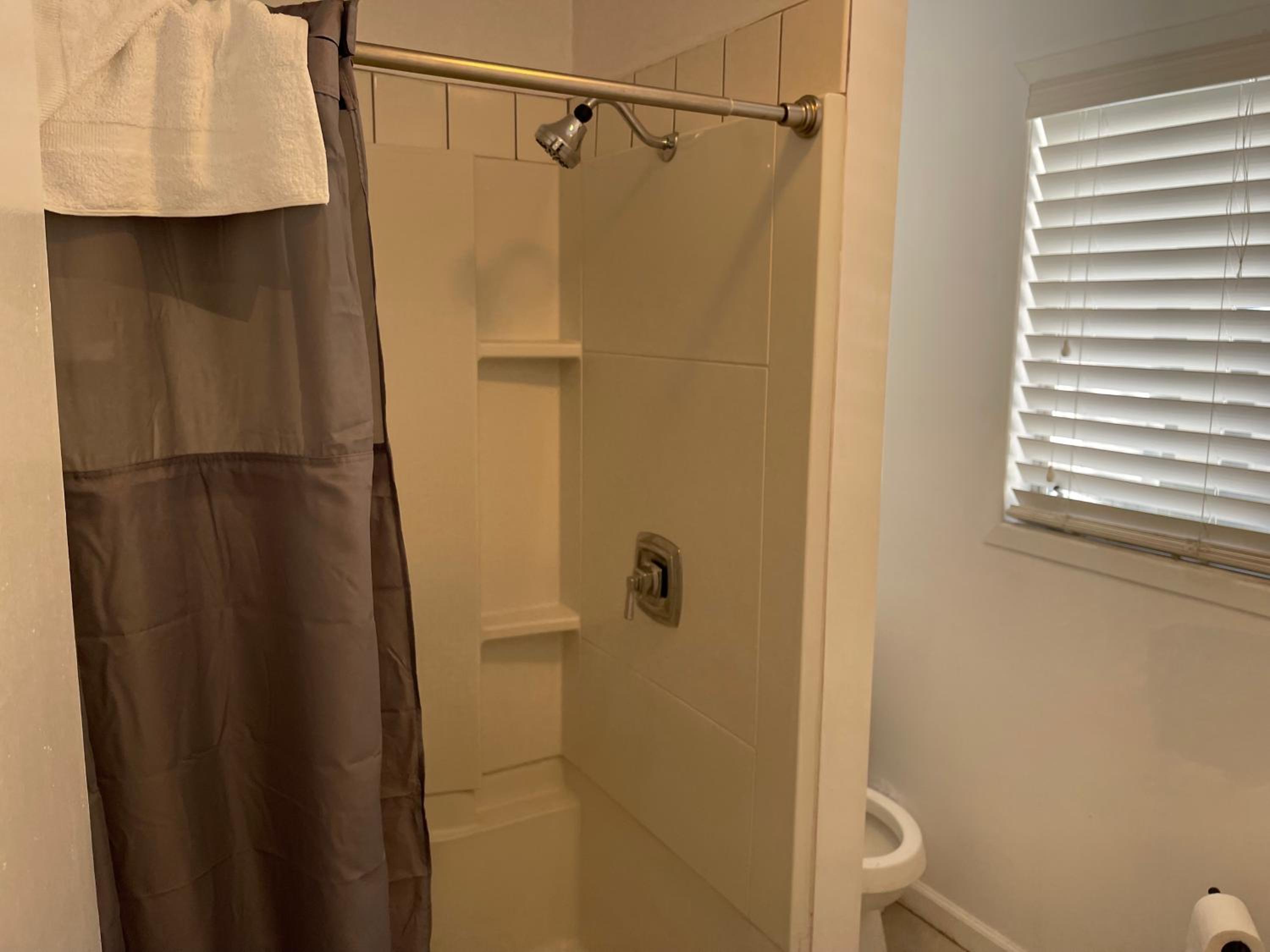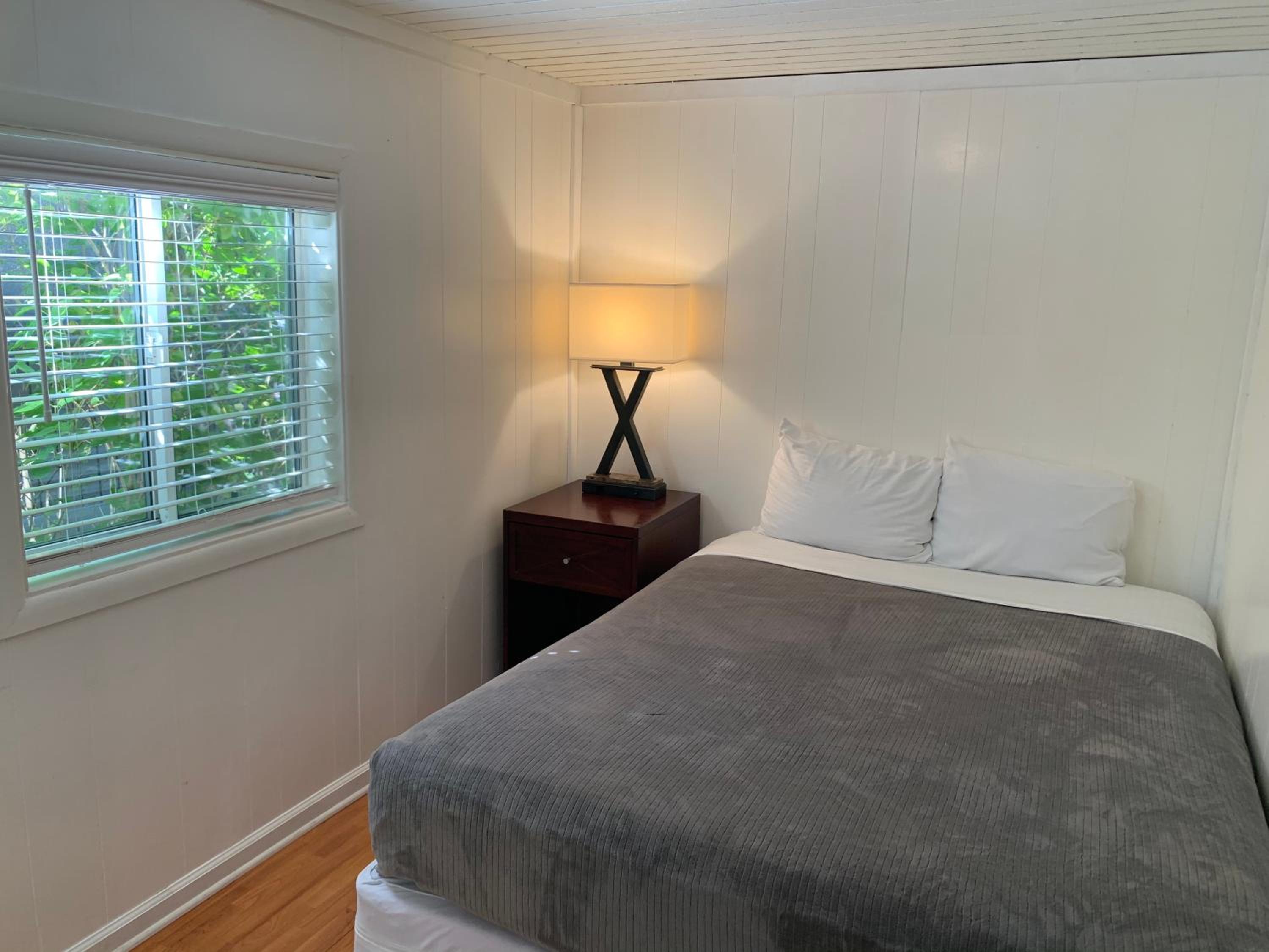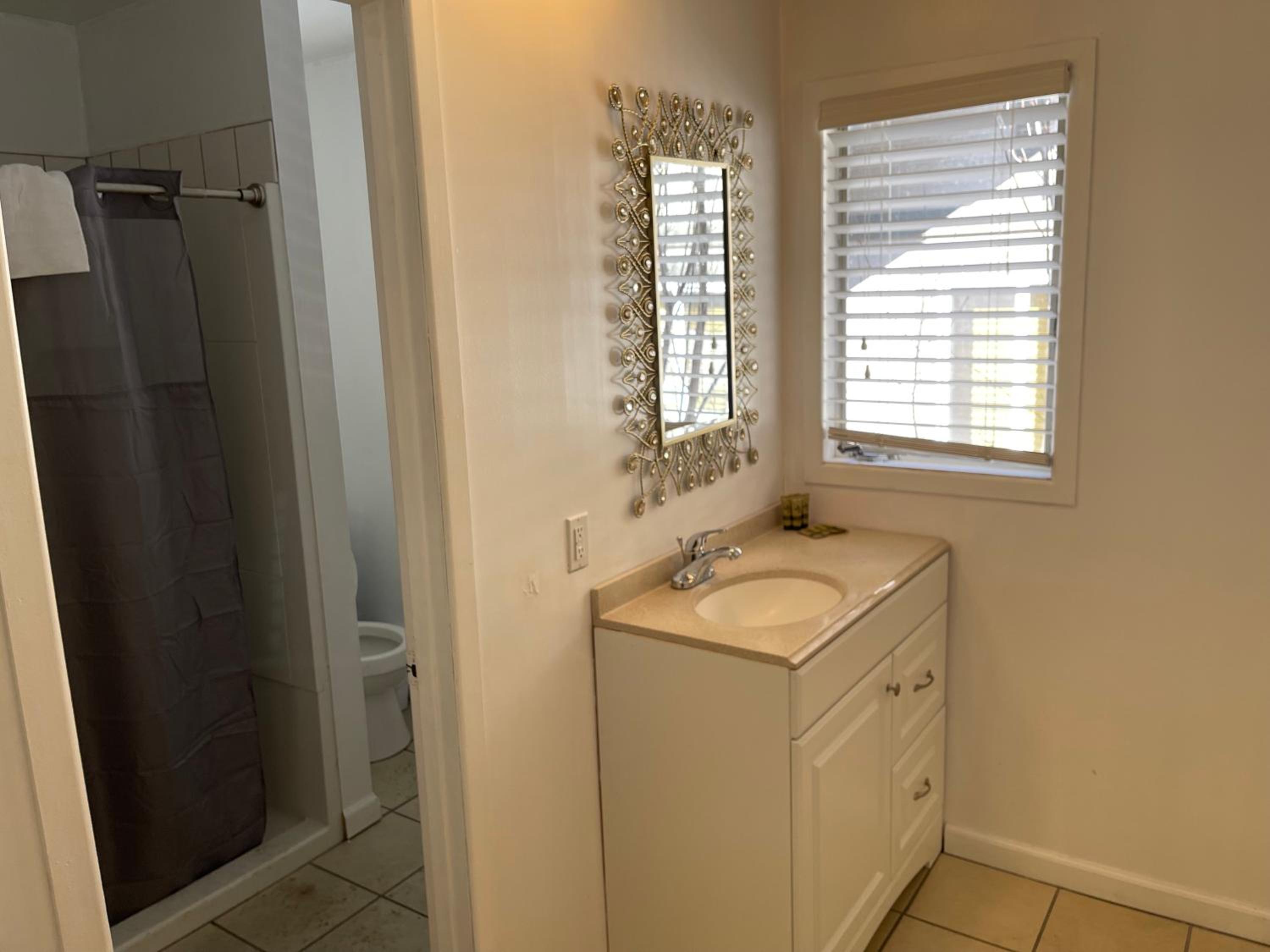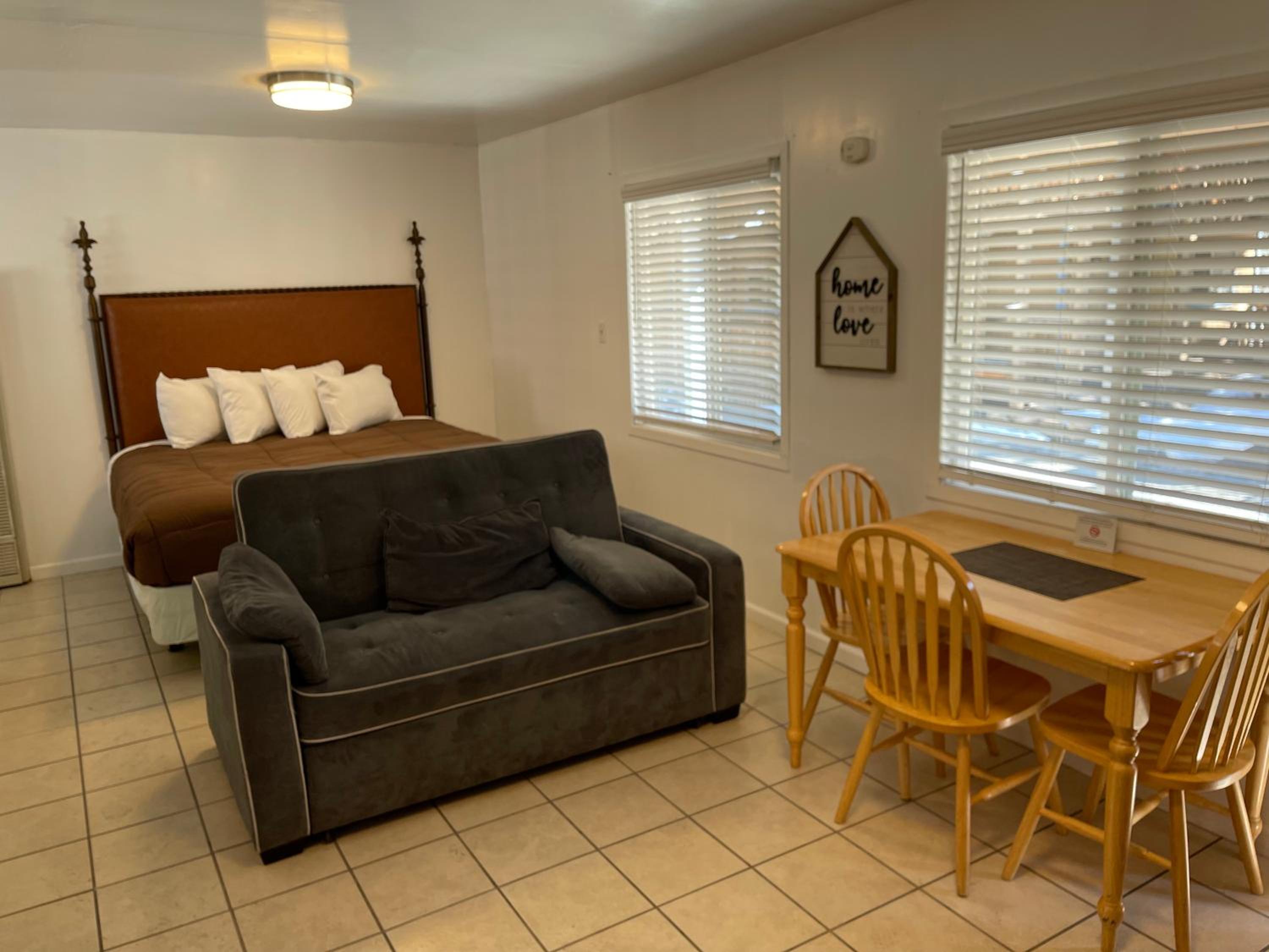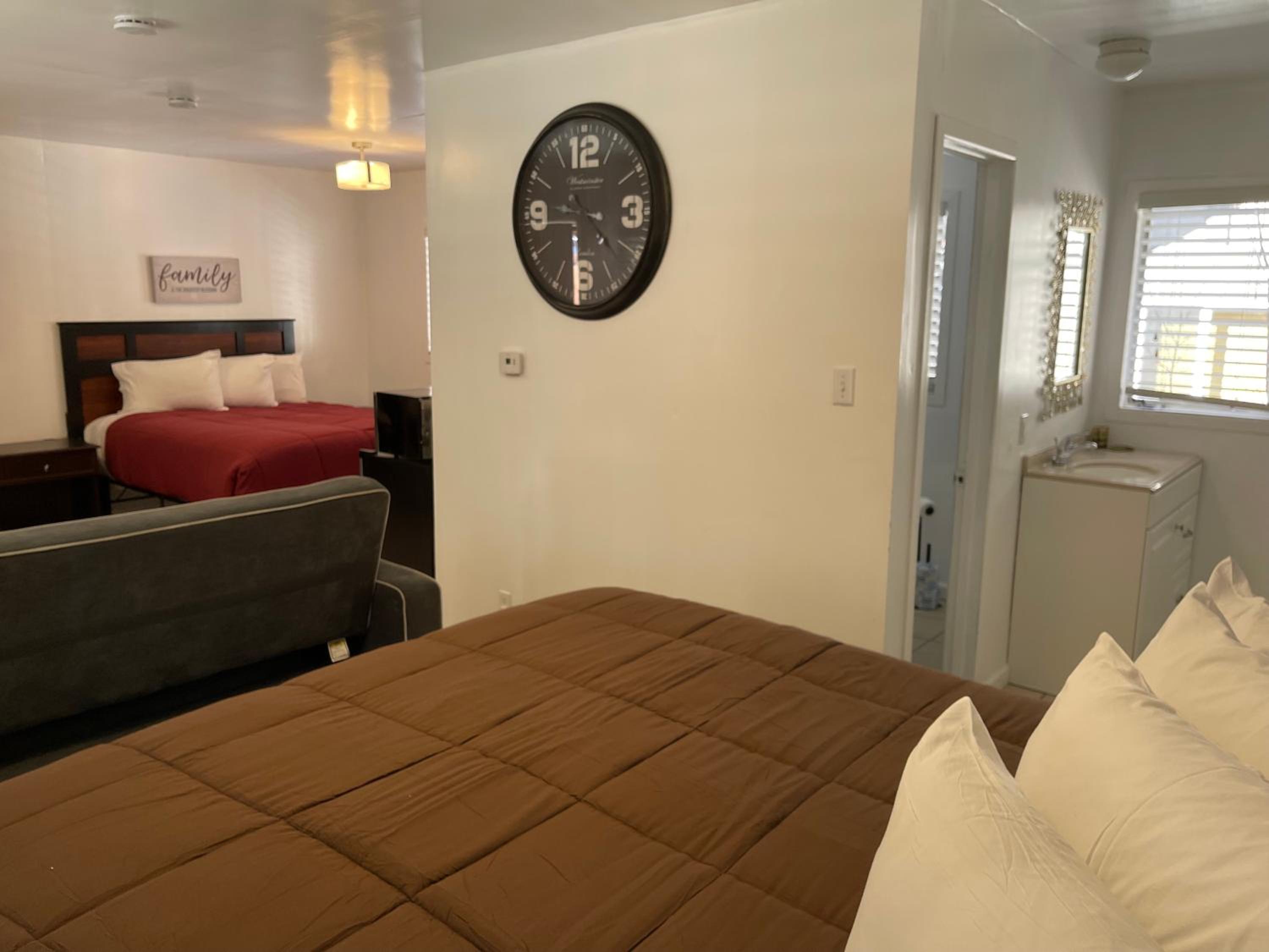 this place is awful. I felt totally "Cat-Fished". Nothing like the pictures, pool was a mud hole and behind a locked fence, no deadbolt on the door to feel safe, no A/C but you also can't open the windows because the screens have holes, ceiling fan in the room but makes a noise when it runs, no coffee pot, no where to put your clothes, floors were dirty which we discovered when we wiped up water from the cooler we brought with a washcloth (no hand towels either). No office staff to speak to hence the virtual check in. Have no idea what it is doing on this website.