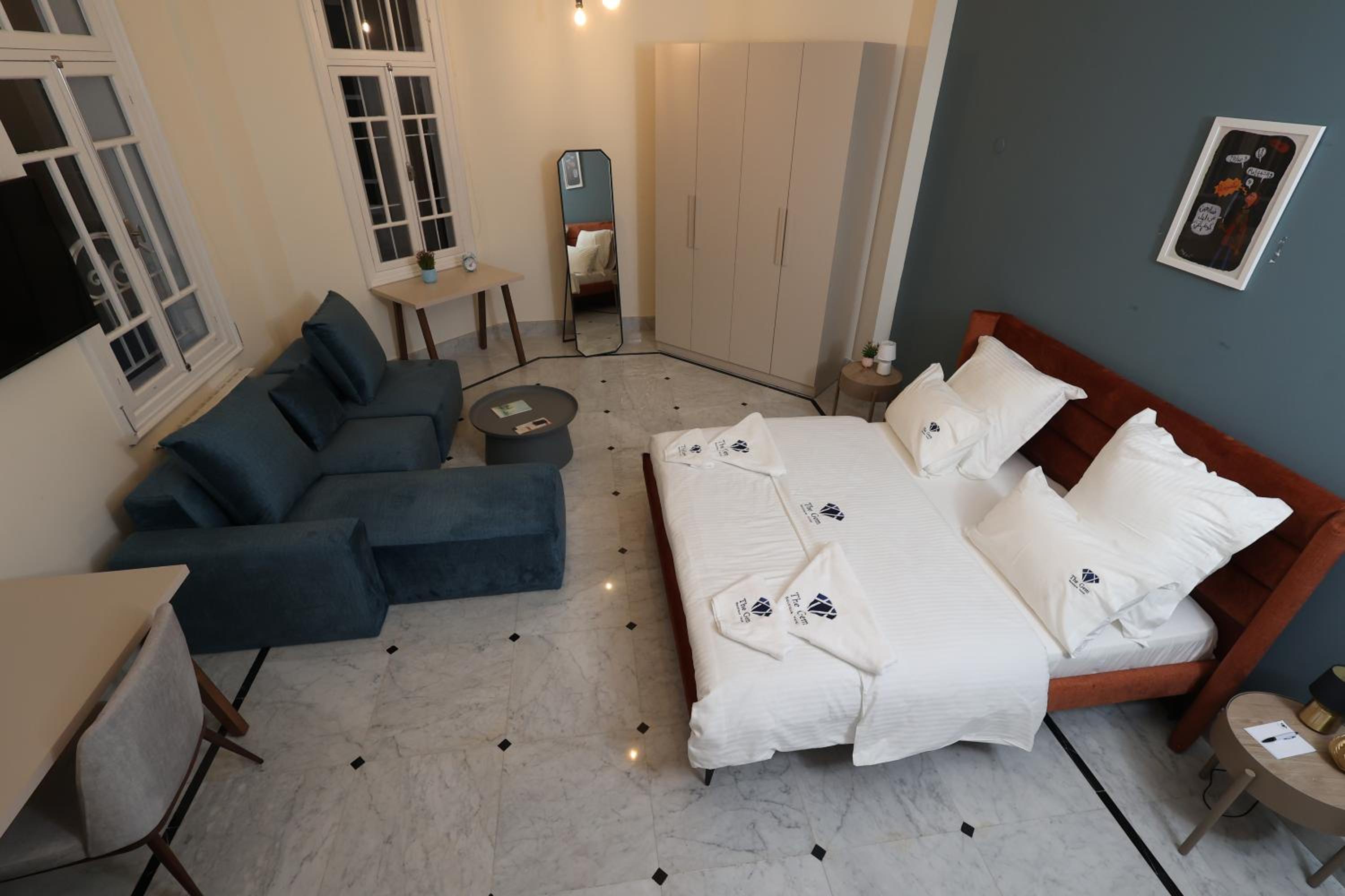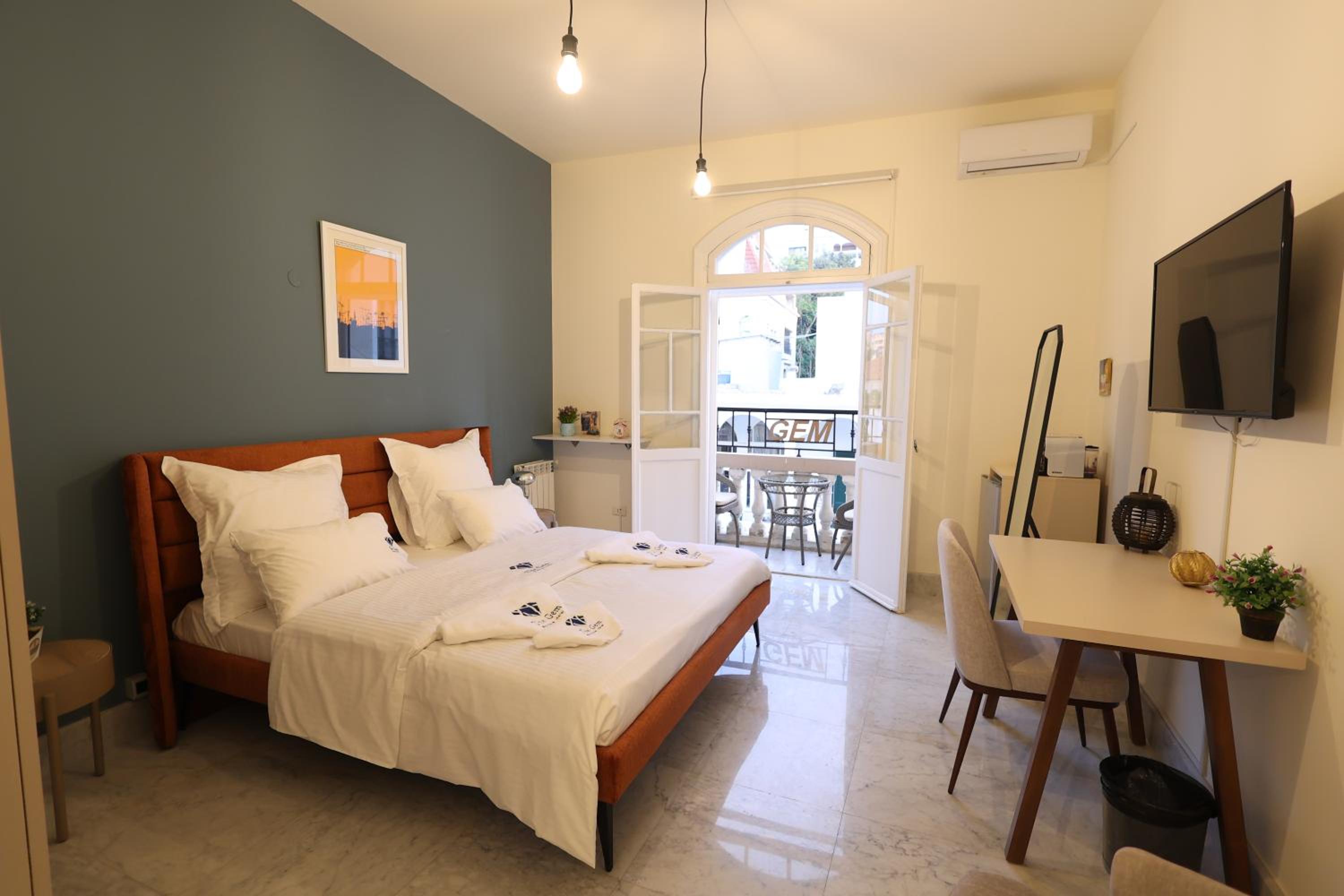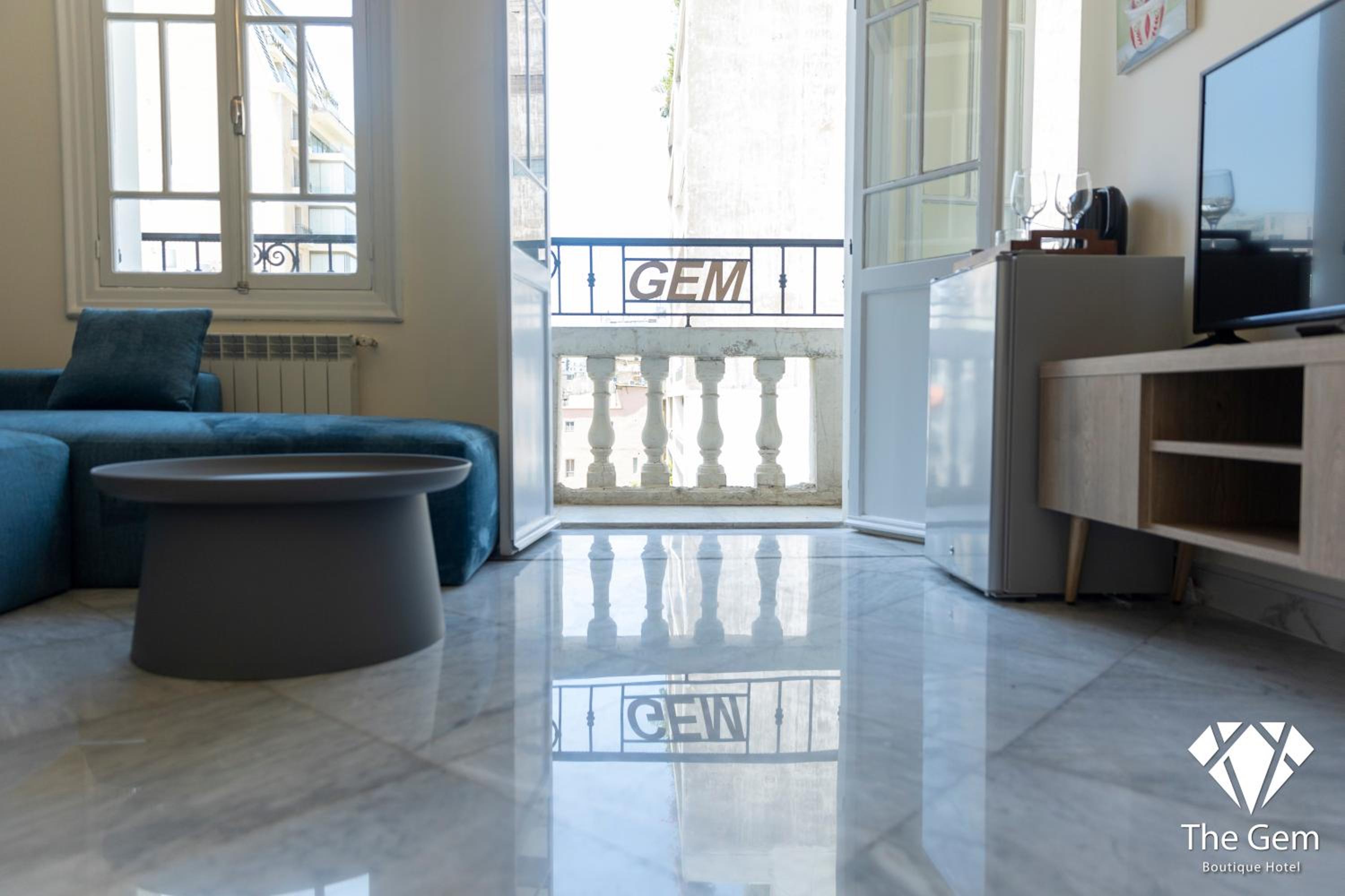Discover THE GEM BOUTIQUE HOTEL, a hidden gem in the heart of Beirut offering a blend of comfort and style. Each room features a private balcony overlooking the vibrant cityscape, complemented by modern amenities like air conditioning and flat-screen TVs.