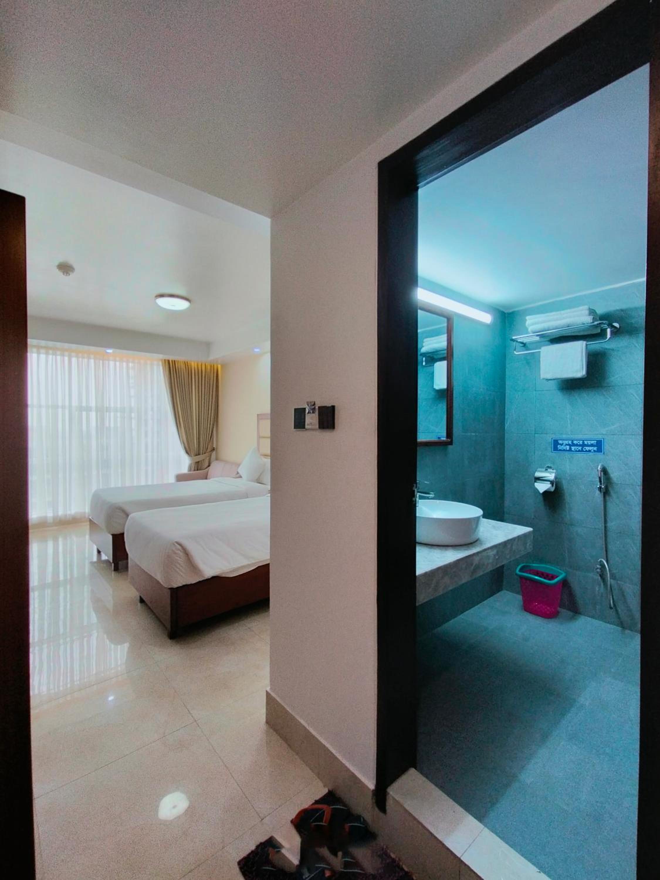 The rooms were generally very clean, but the shower and the window frames (unsure why window frames and window panes are never properly cleaned in Bangladesh) could have done with a more thorough scrub and wipe. The toilets in the breakfast restaurant were appalling and should be addressed. The room service menu is huge, but they only had a few Bangla and Thai options available and you'll properly have better tasting food at one of the local restaurants in the area.