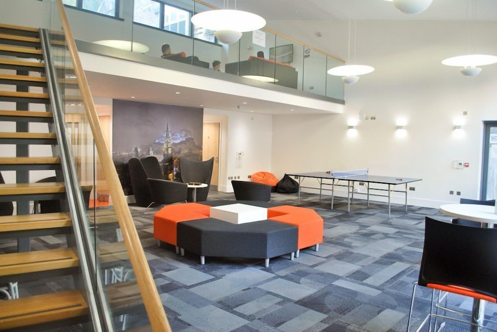"Apartment" is overselling what is a wing of 6 dorm rooms with a shared kitchen and two bathrooms. You get all the noise (slamming doors, hearing neighboring 'apartment' conversations) of dormitory living - but the location is excellent for central Edinburgh.