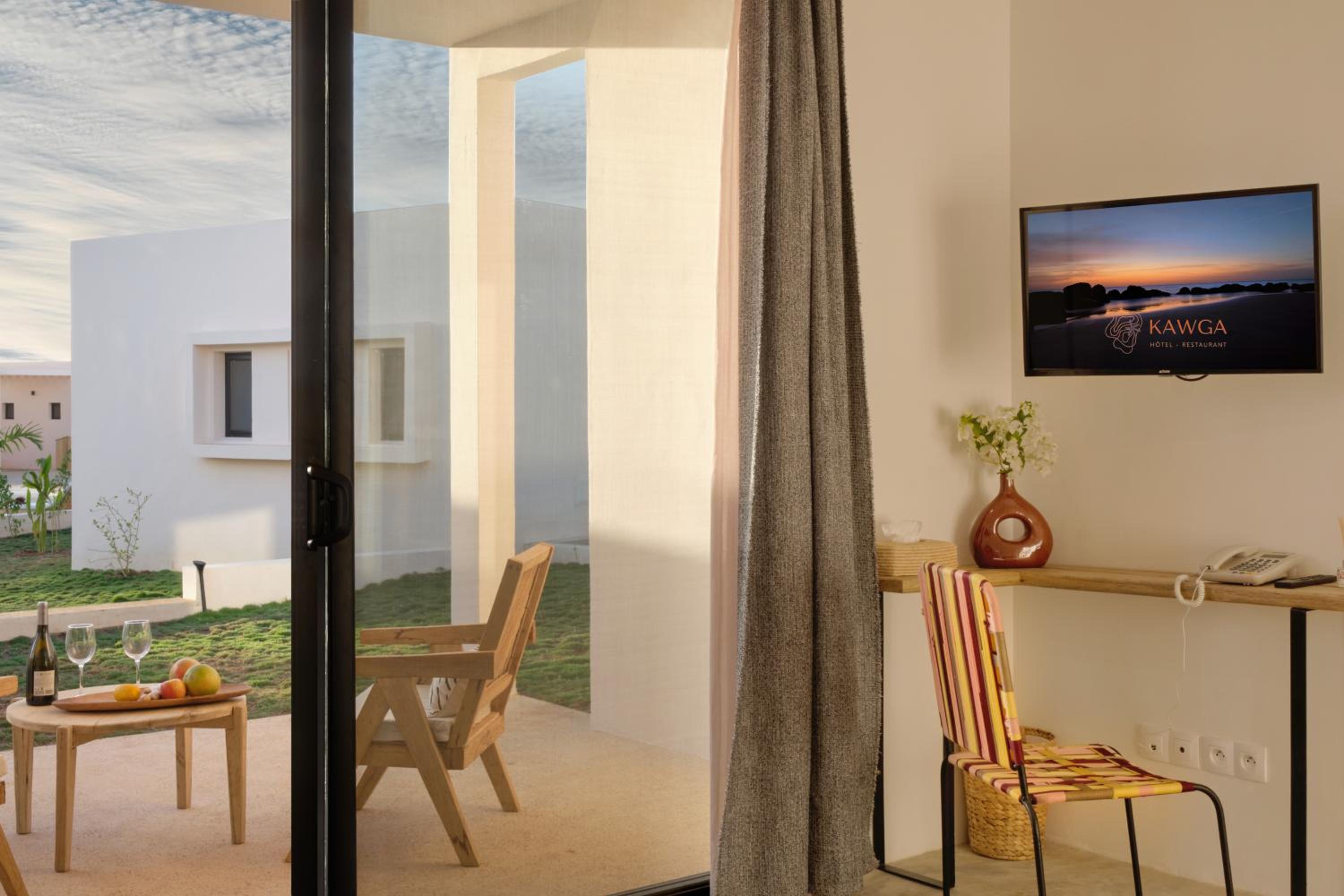 Comfortable Accommodation - Each room at Kawga Hôtel is thoughtfully equipped with amenities such as a flat-screen TV, air conditioning, and a safety deposit box. The private bathrooms come with complimentary toiletries, ensuring a relaxing stay.