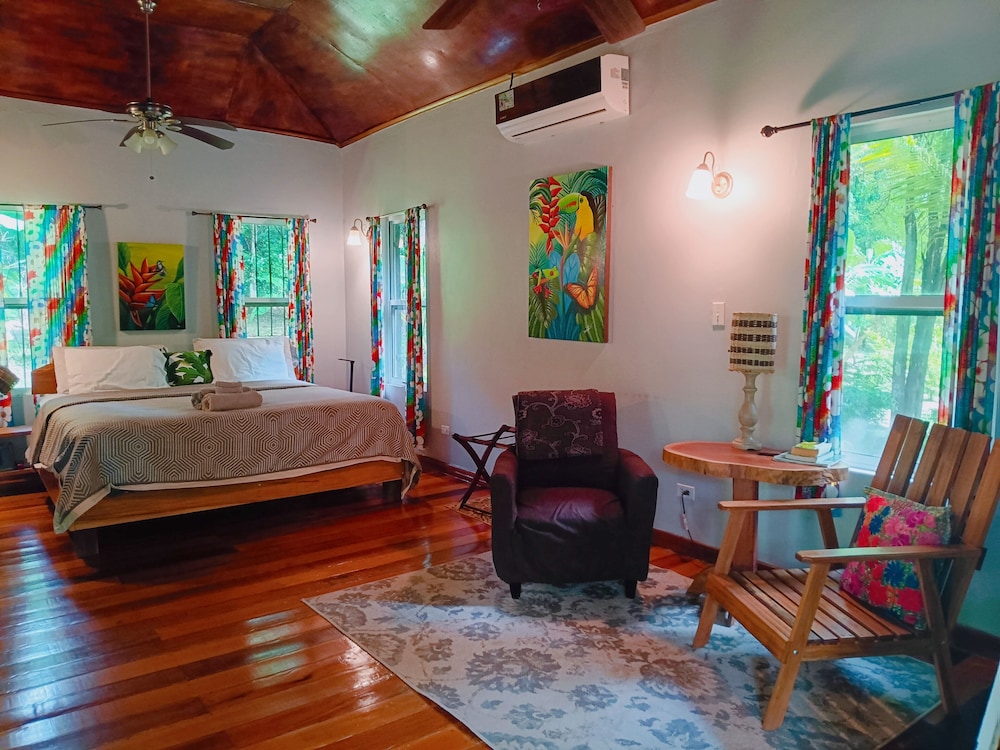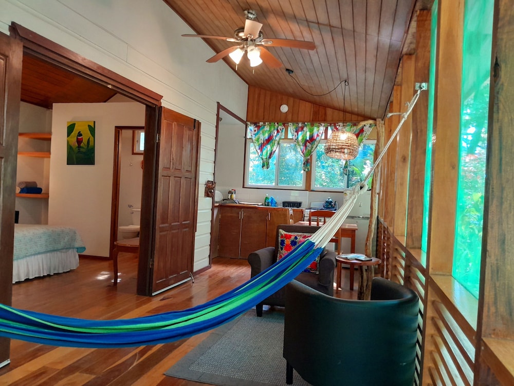 O local se encontra bem em meio à mata. A simplicidade, a decoração e o trato direto com o proprietário transmitem uma sensação de se hospedar na casa de um membro da família, não em um hotel, inclusive porque não há serviço de arrumação de quarto e o café da manhã não estava disponível. A propriedade fica a cerca de 10 minutos do centro de San Ignacio, mas não dá para ir caminhando e não é fácil encontrar táxis na cidade. O administrador, Ron, foi muito solícito e nos levou em seu próprio carro ao restaurante, e na volta nos auxiliou a encontrar um ATM e mercado para uma pequena compra, mesmo sendo domingo. De forma geral, o local é bastante quente, então não conseguimos aproveitar a varanda ou a área externa; no interior do quarto, o ar condicionado foi bastante eficaz para manter o conforto térmico. O quarto estava bem limpo, é espaçoso e conta com uma pequena cozinha muito bem equipada. Apesar da mata ao redor, não havia insetos no interior do quarto, pois todas as janelas são teladas. Foi uma estadia agradável.