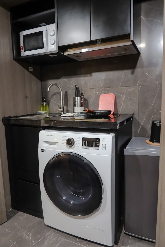 房間乾淨,有完整的廚具及洗脫烘洗衣機