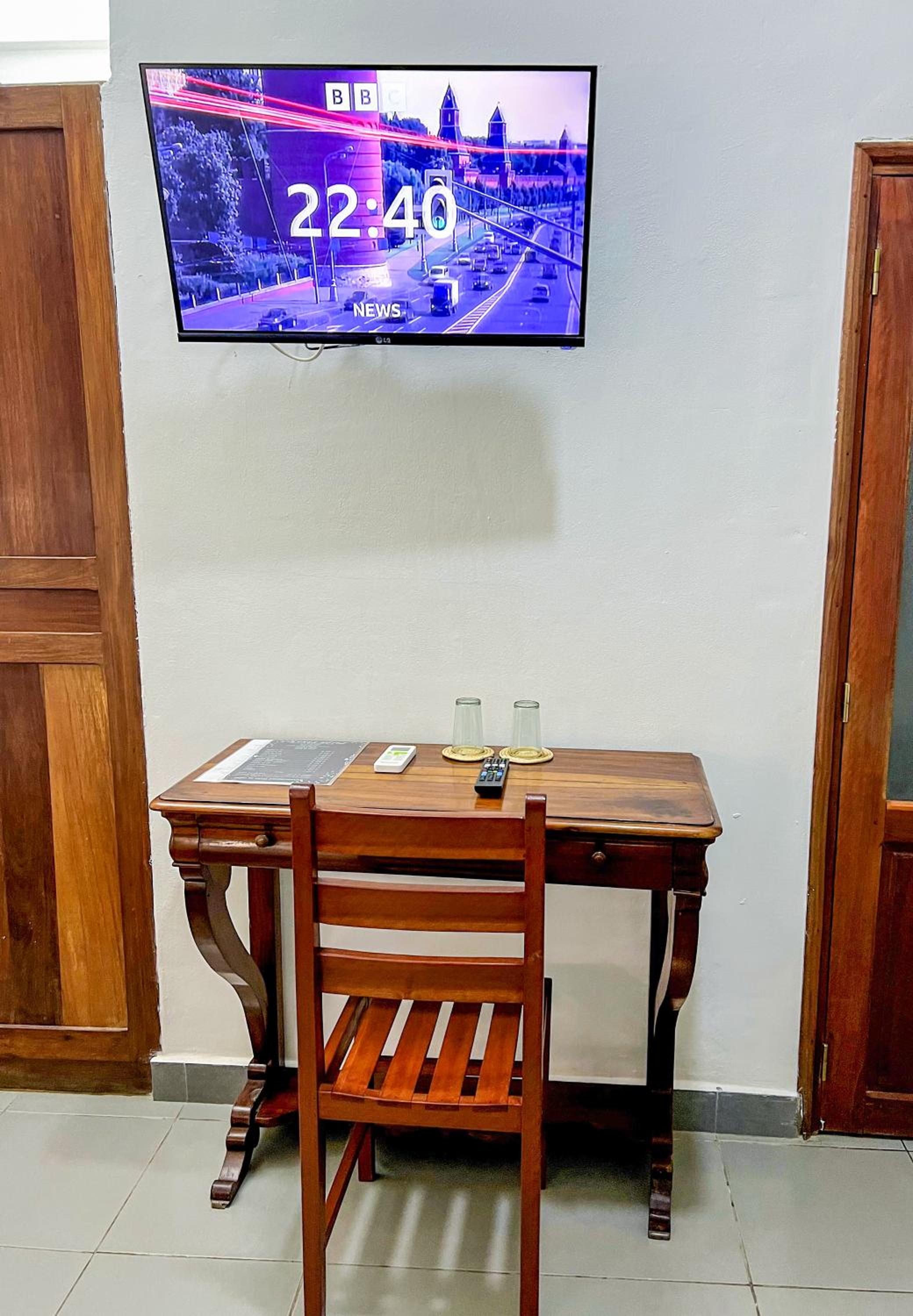 The reception charges a higher price than the official price reserved in booking.com. Not professional.