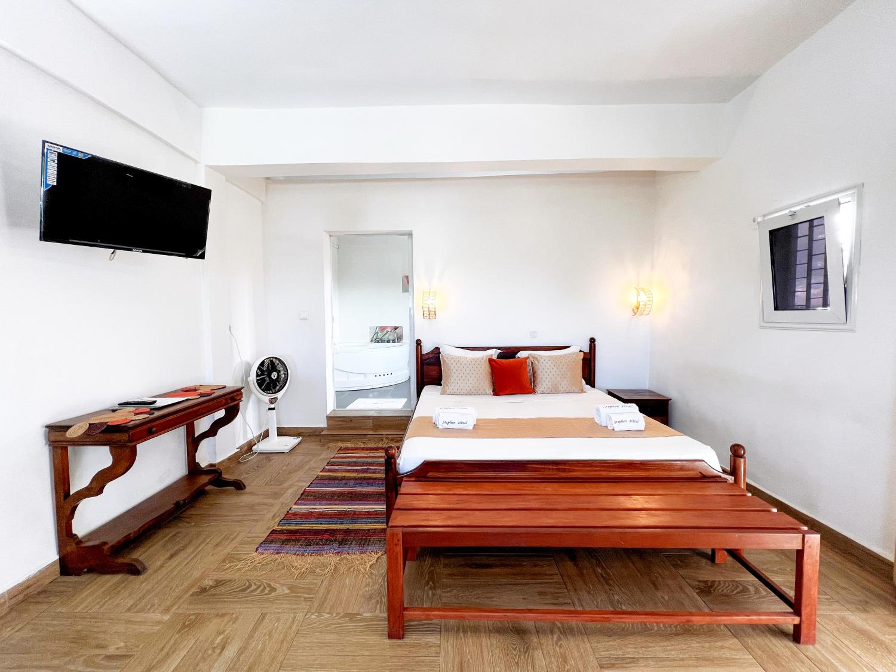 Stylish and Convenient Accommodation - STEPHEN HOTEL in Toamasina offers a comfortable stay with modern amenities including free WiFi, room service, and a 24-hour front desk. Each room features a flat-screen TV, bathrobes, and a private bathroom with a shower.