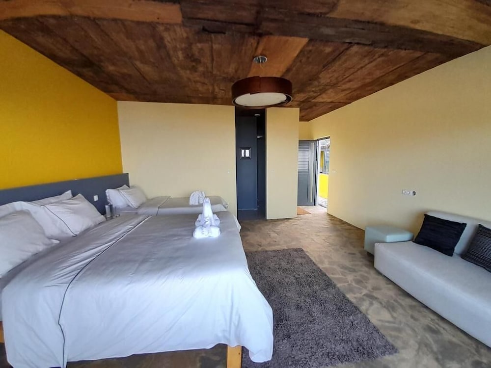 Hotel situé à Pinhão, un hameau isolé dans les montagnes à 15-20 mn en taxi (10€) de Ribeira Grande, puis 10 mn de marche sur chemins et escaliers (la localisation sur la carte qui le positionne au centre de Ribeira Grande est trompeuse). Transport collectif à partir de la route à 7h-7h30, petit déjeuner servi à 8h30: il faut choisir. Pour moi qui étais sur l’île pour la découvrir et faire des randos, les contraintes ne compensent vraiment pas le lieu, plus adapté pour des séjours plus sédentaires.