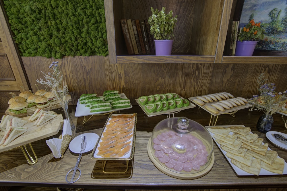 When we arrived to breakfast(8 to 11 am) at 10 am, there were only empty dirty plates, fruits, some veggies and cakes. On our questions we were told that we still can eat what is left. After some arguments they brought some sausages and eggs. Wasn't a nice feeling of begging for food noting that we paid 189$ per 2 nights