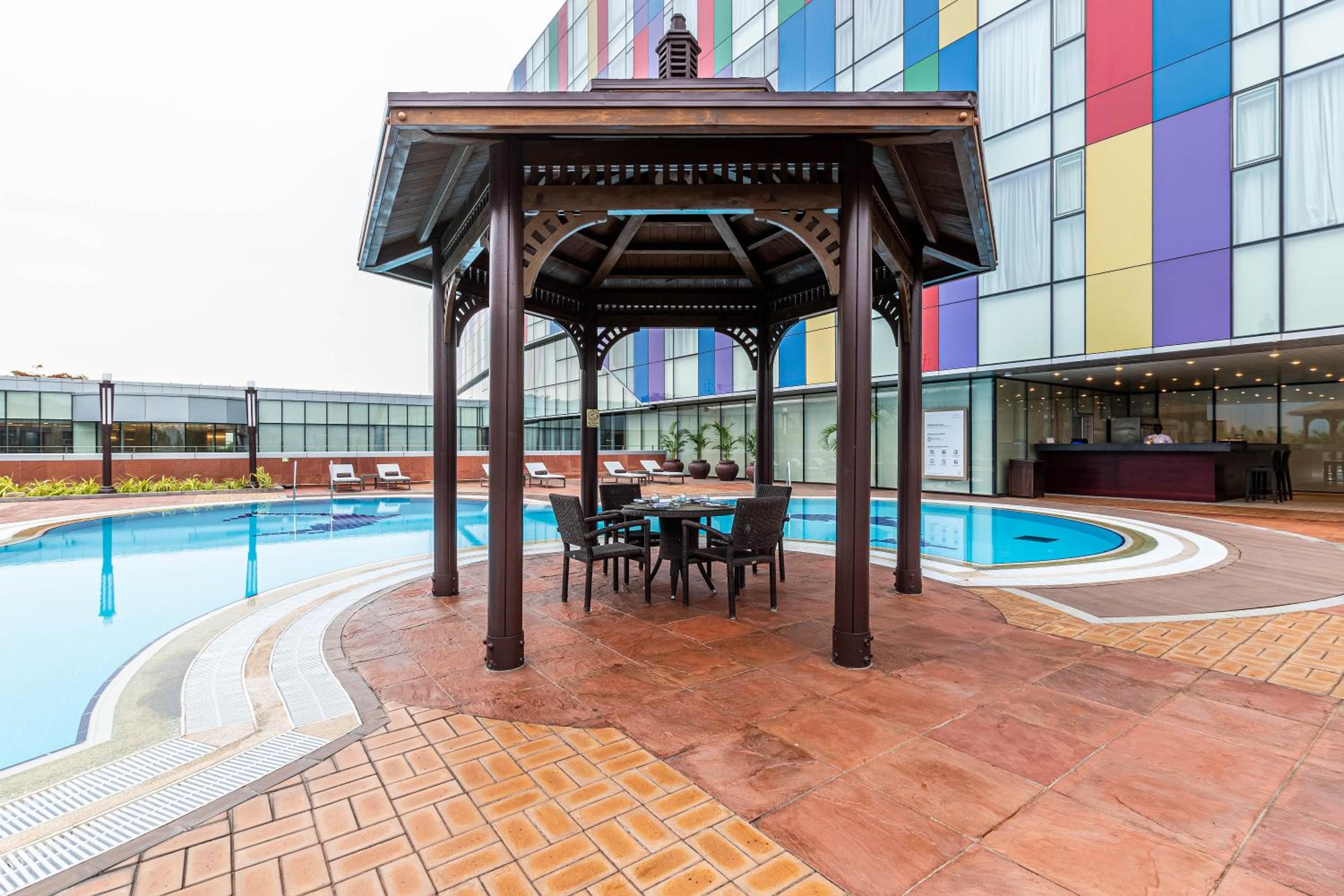 Guests can unwind and rejuvenate at the hotel's outdoor swimming pool and spa center, perfect for a leisurely afternoon or post-meeting relaxation.