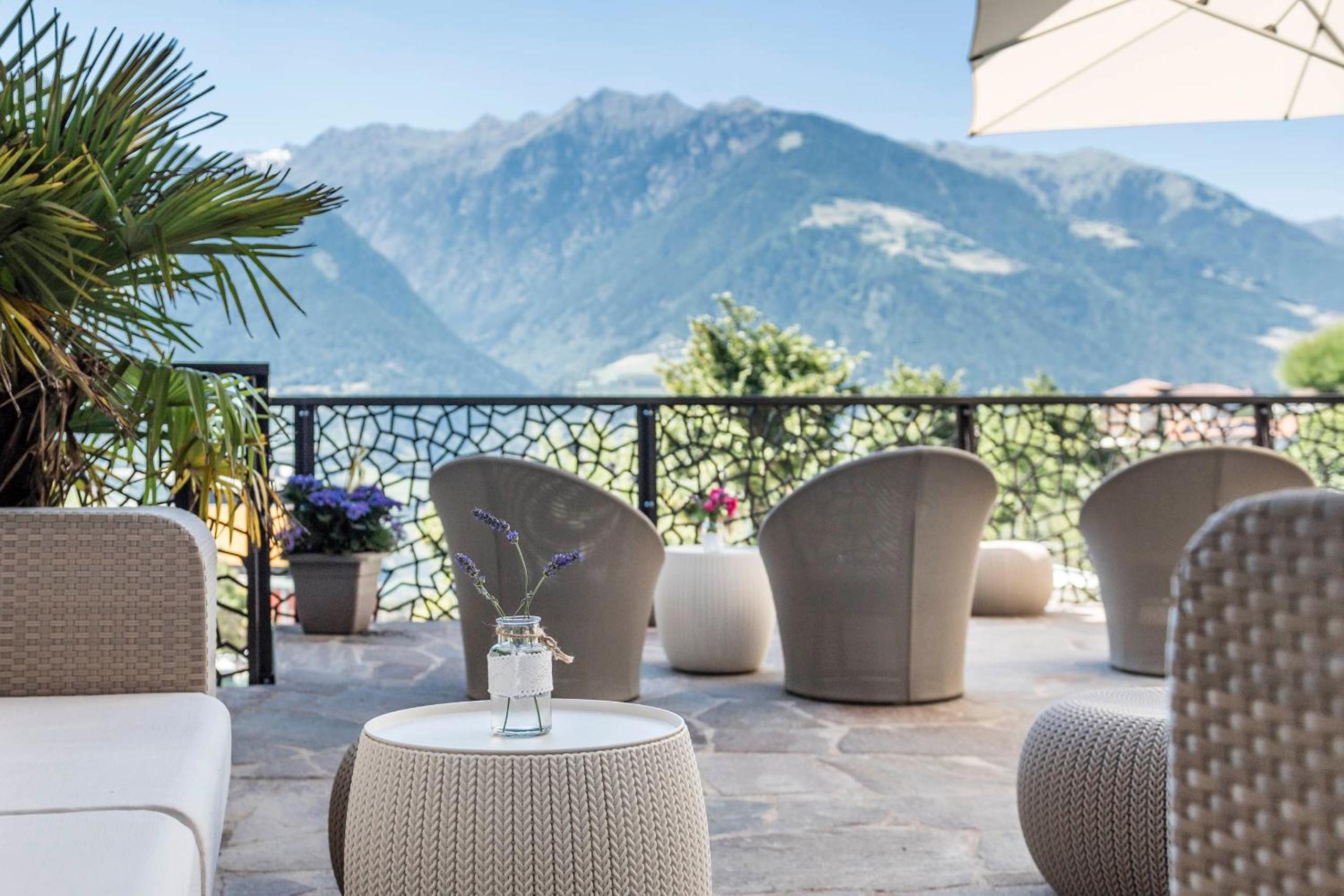 Hotel Rosengarten offers a serene escape with a wellness centre, free bikes, and balconied rooms. Enjoy the panoramic terraces overlooking the Merano valley and relax in the air-conditioned suites with free WiFi and satellite TV. Indulge in the continental breakfast and savor local and international cuisine at the restaurant, including vegan options and wines from their vineyard.