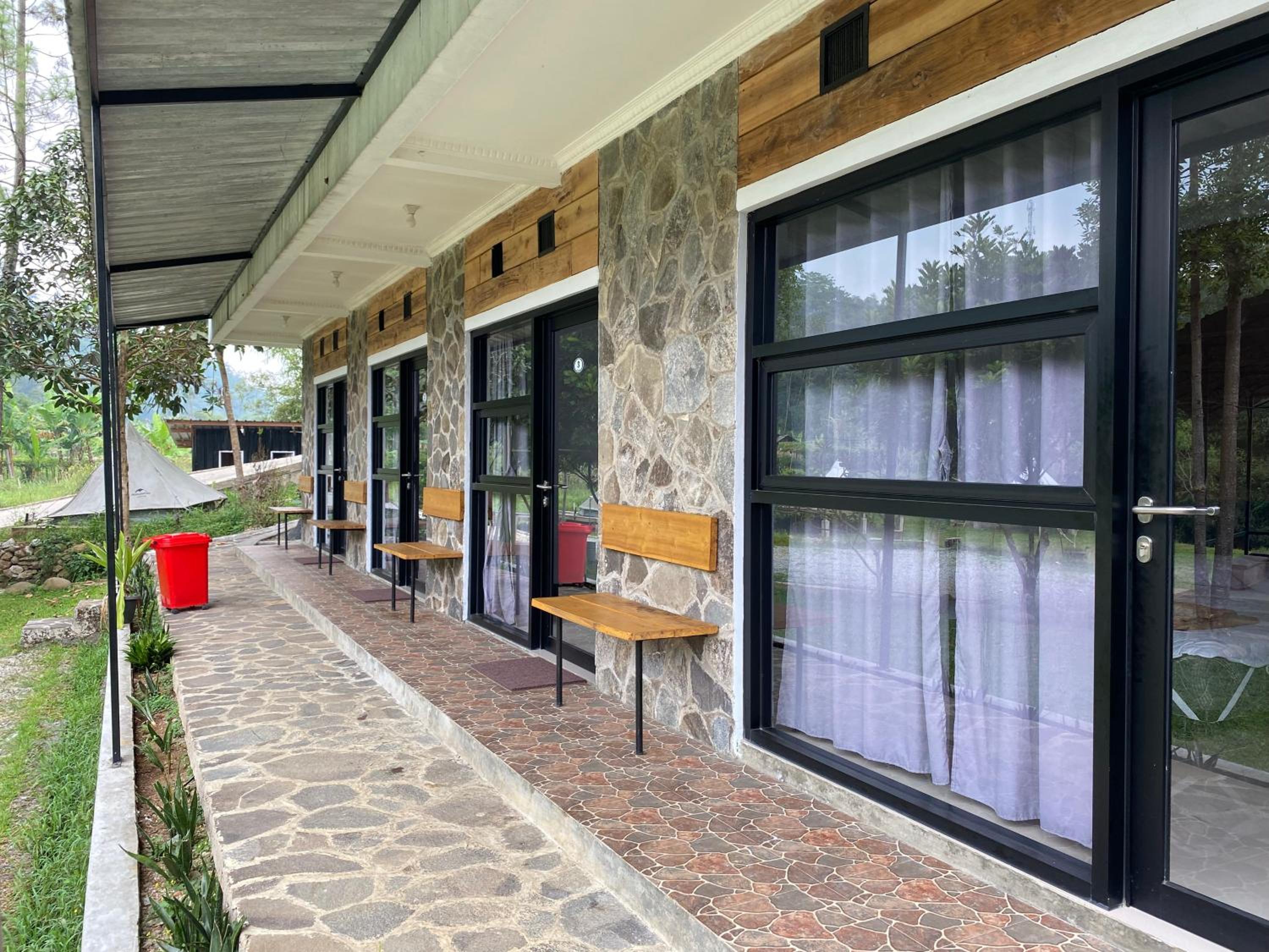 Shine River in Ciwidey boasts an inviting outdoor swimming pool and a lush garden, perfect for relaxation and unwinding after a day of exploring the nearby attractions.