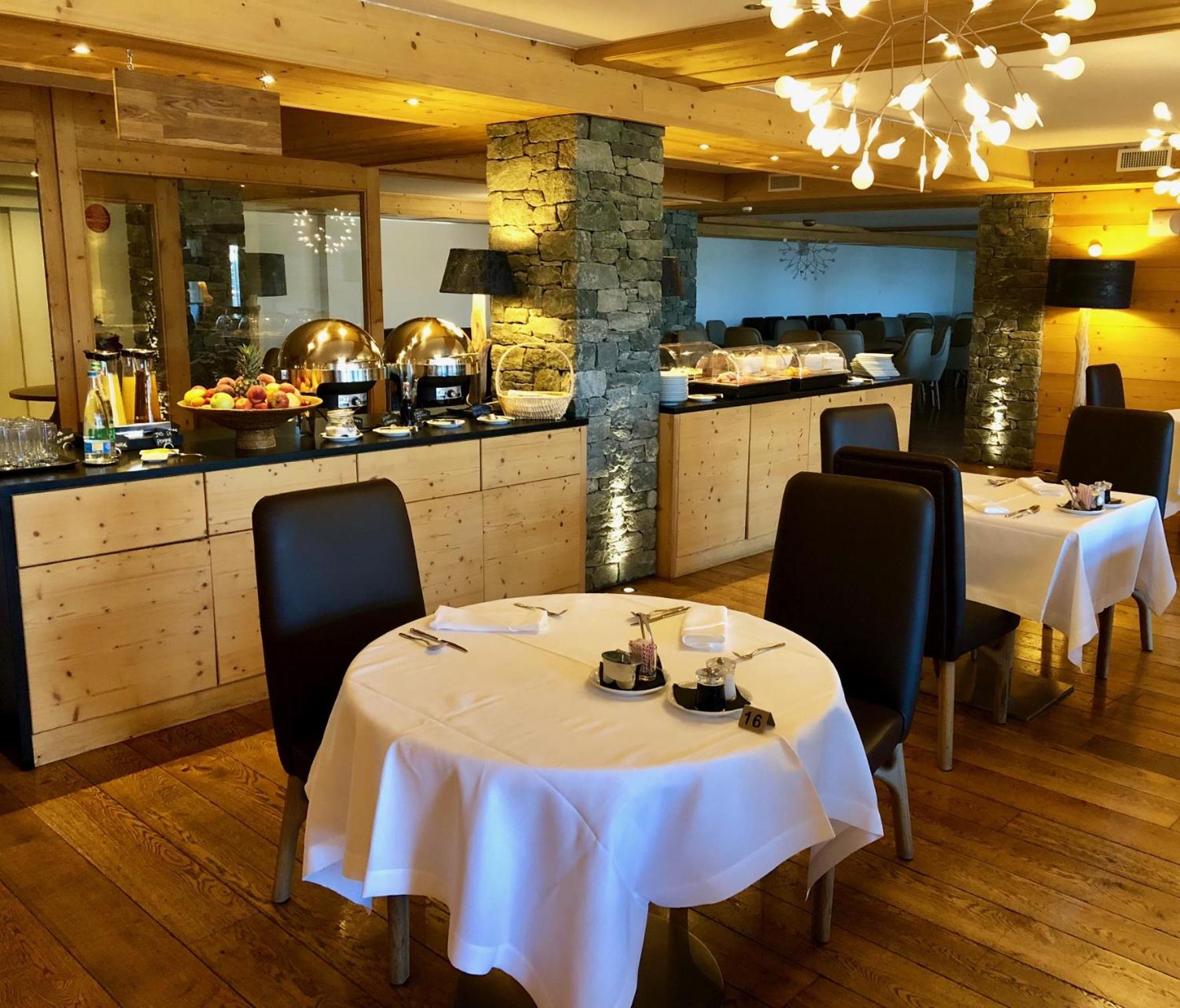Das Hotel wurde innen 2023 in naturnahem, modernem Stil renoviert, Bäder mit dunklem Schiefer und guter Beleuchtung, Zimmer mit viel Naturholz an den Wänden, toller Spiegel mit TV-Funktion, funktionell und dauerhaft mit hochwertiger Ausstattung. Reichhaltiges Frühstück mit fantastischer Aussicht auf die Berge - auch vom Zimmer. Grosszügige, gemütliche Lobby, schöne Bar, grosses Restaurant für Halbpension-Gäste und auswärtige - nach Wahl A la Carte.