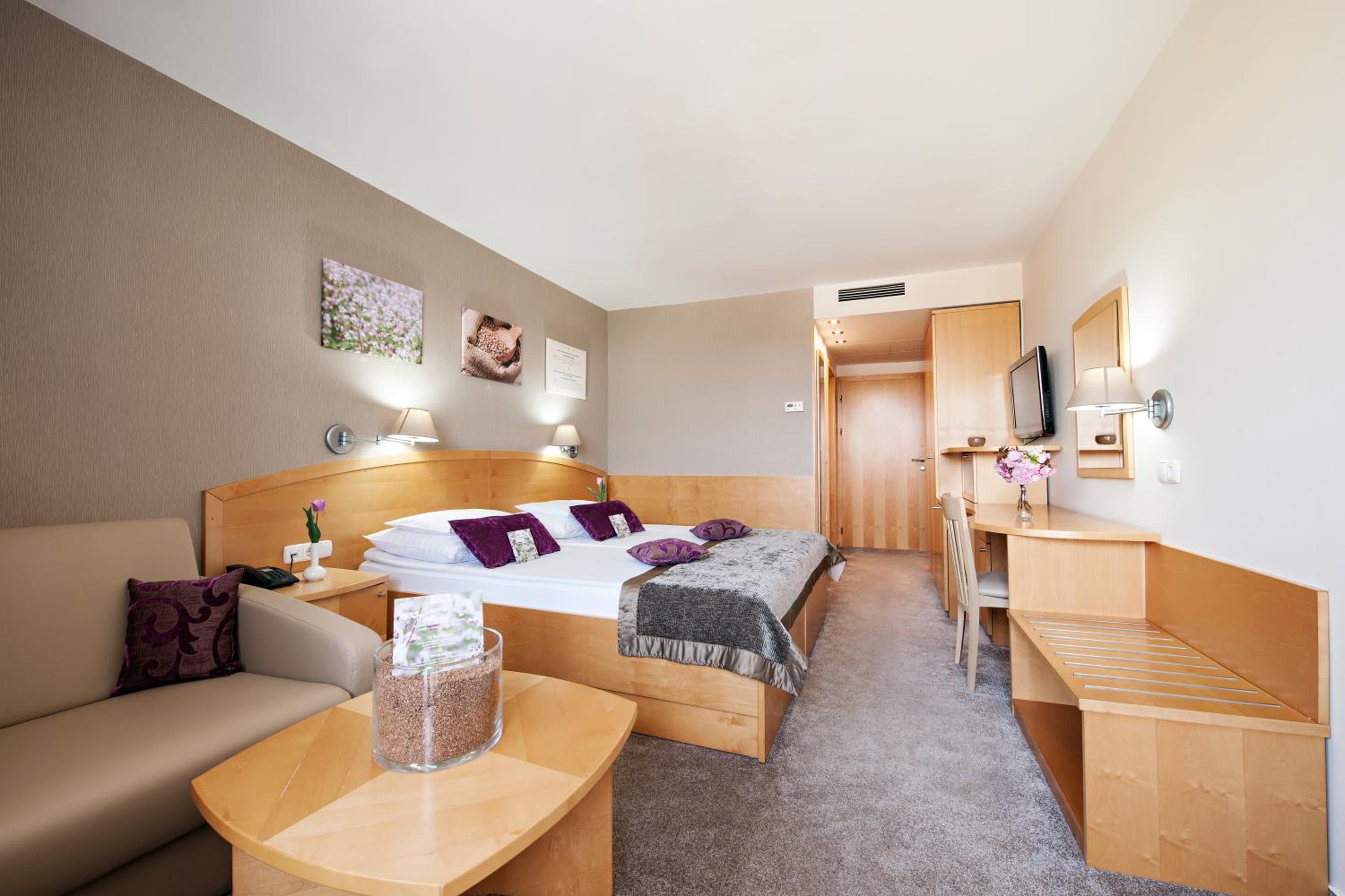 Camera spaziosa e confortevole. Colazione e cena a buffet con buona varietà di selezioni. Piscine ed ambiente ben riscaldato con l’acqua termale “nera”. Possibilità di accedere al complesso Terme 3000 usando passaggi al coperto.