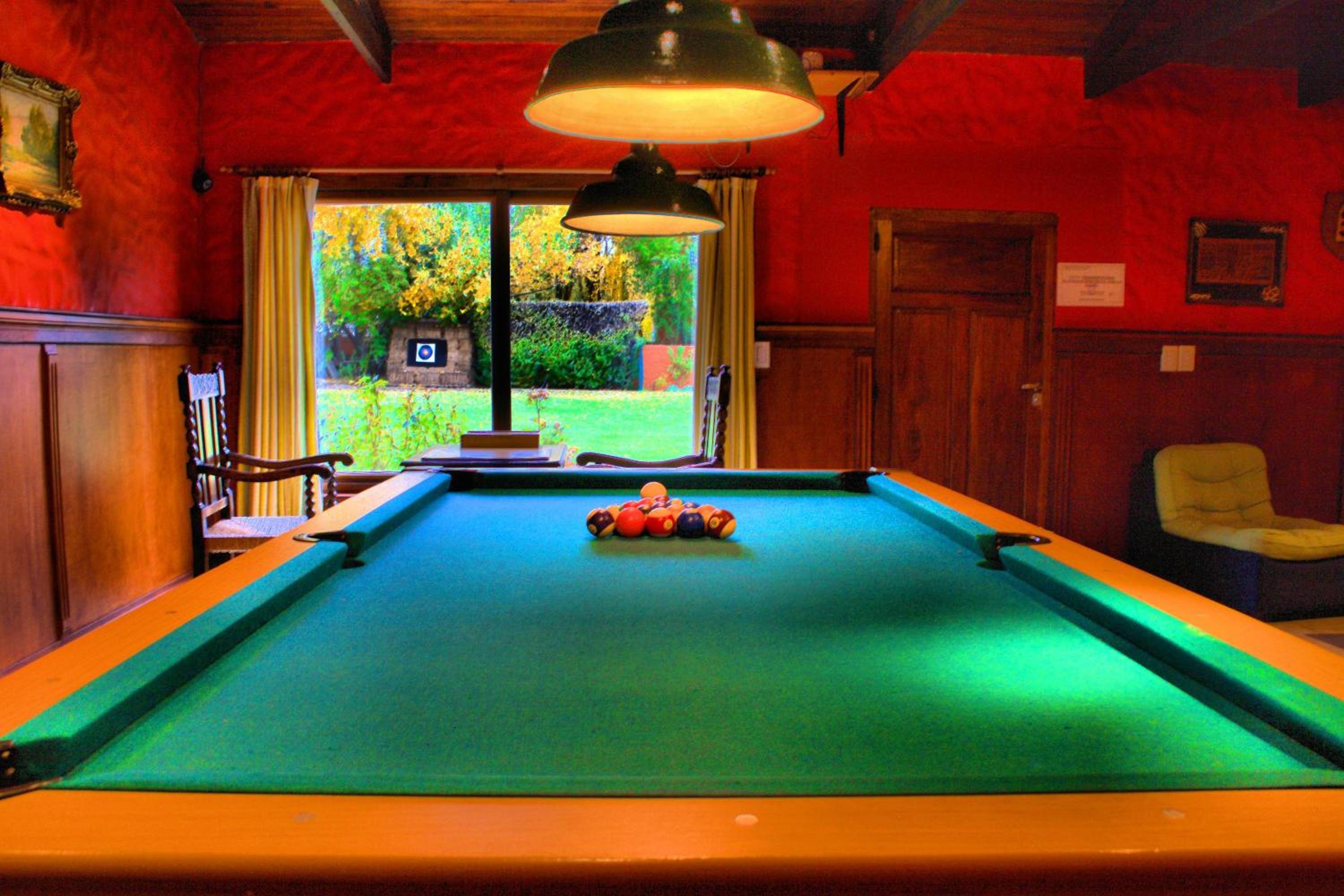 Nested in a sprawling one-hectare property, guests can delight in the lush park, heated pool, and a games room with a pool table.