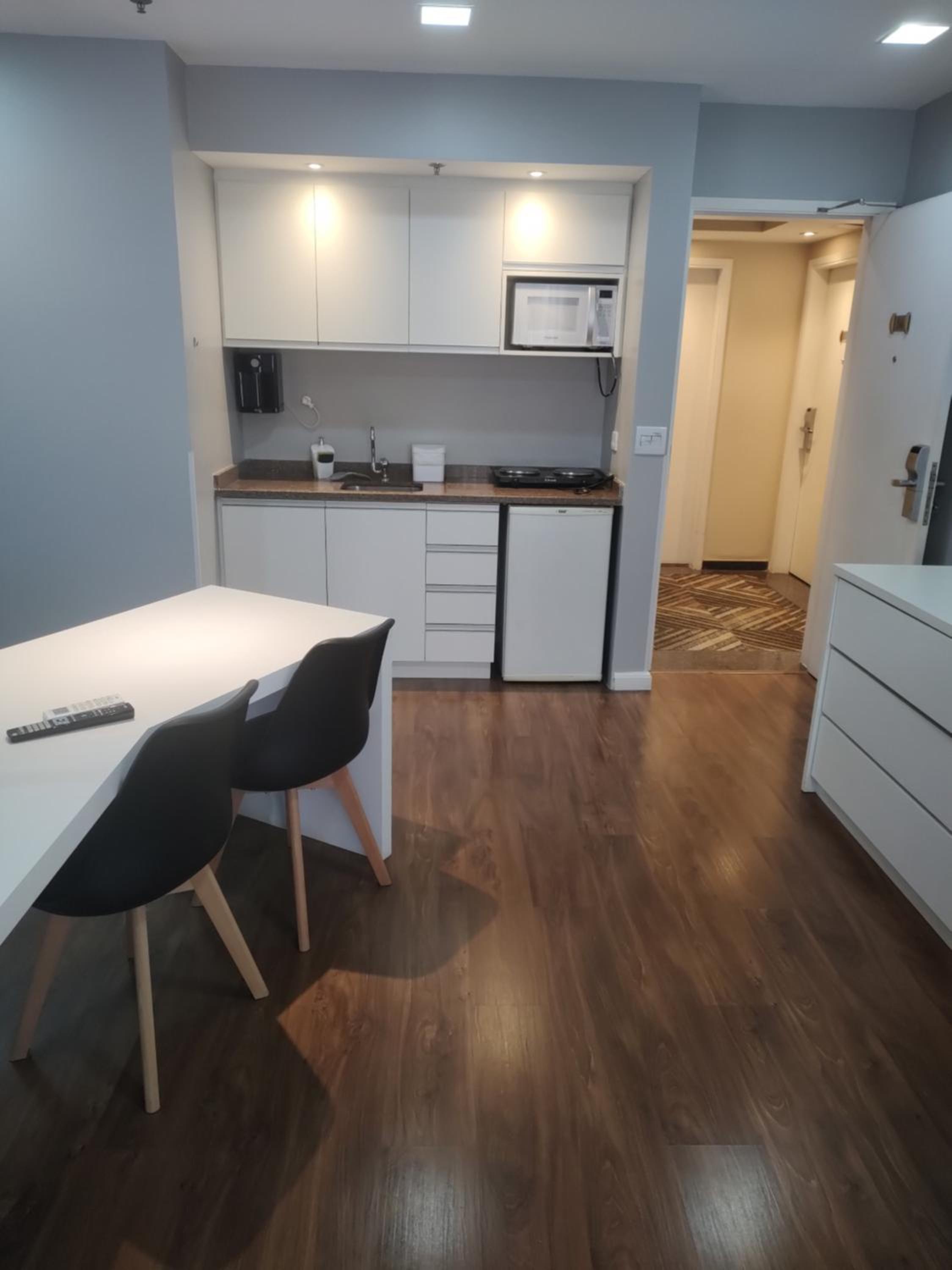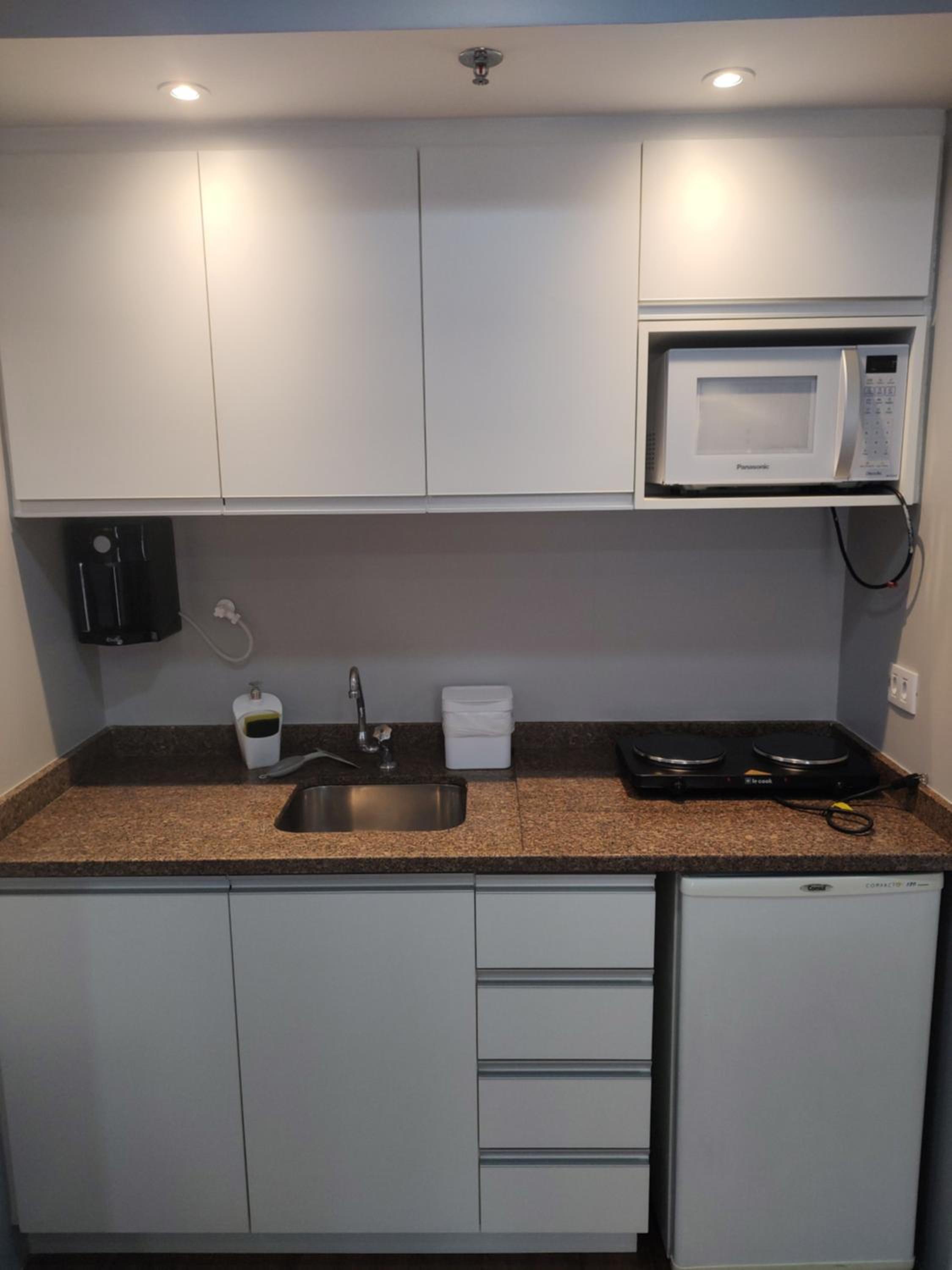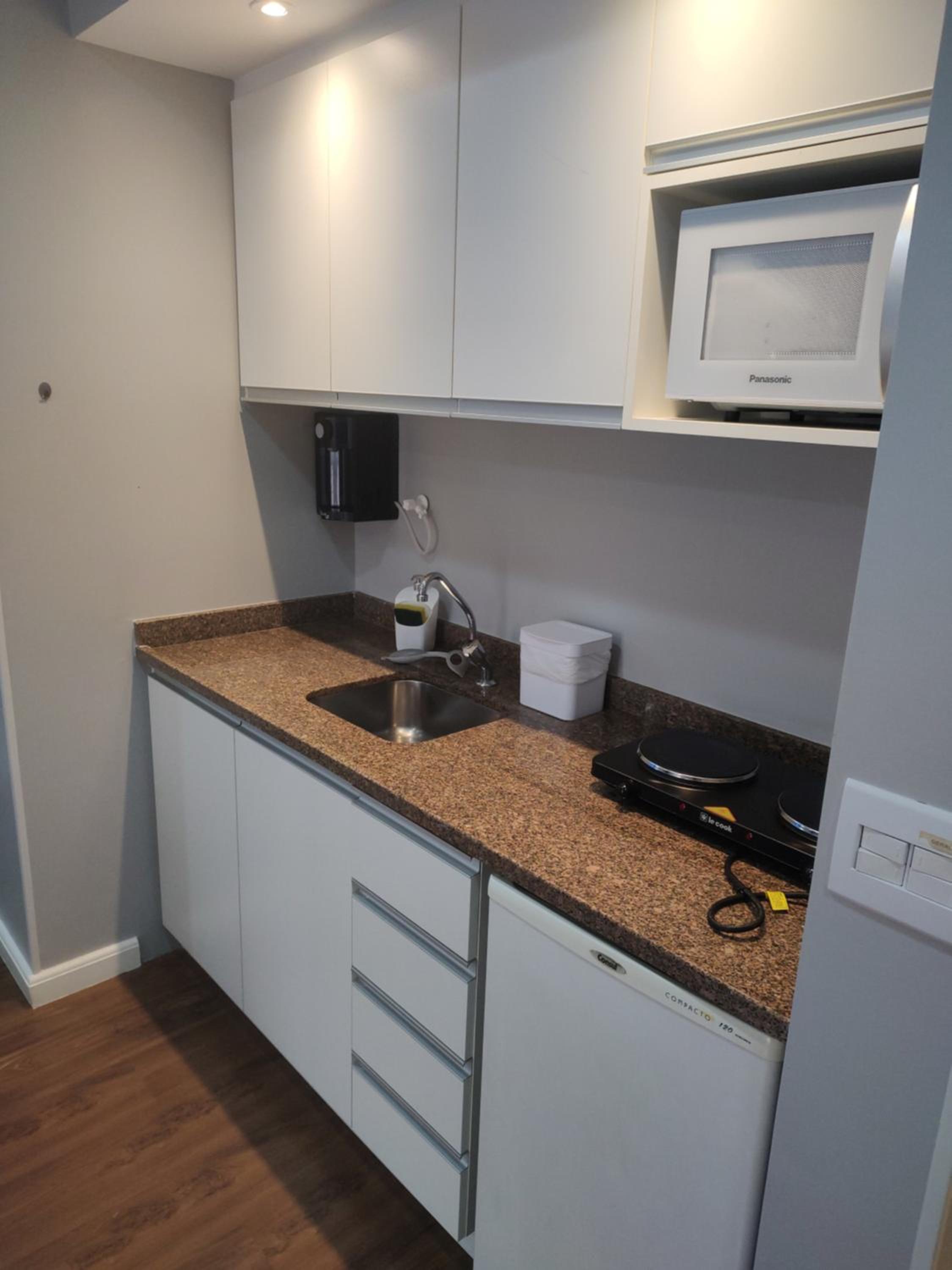 Well-Equipped Kitchenette and City Views