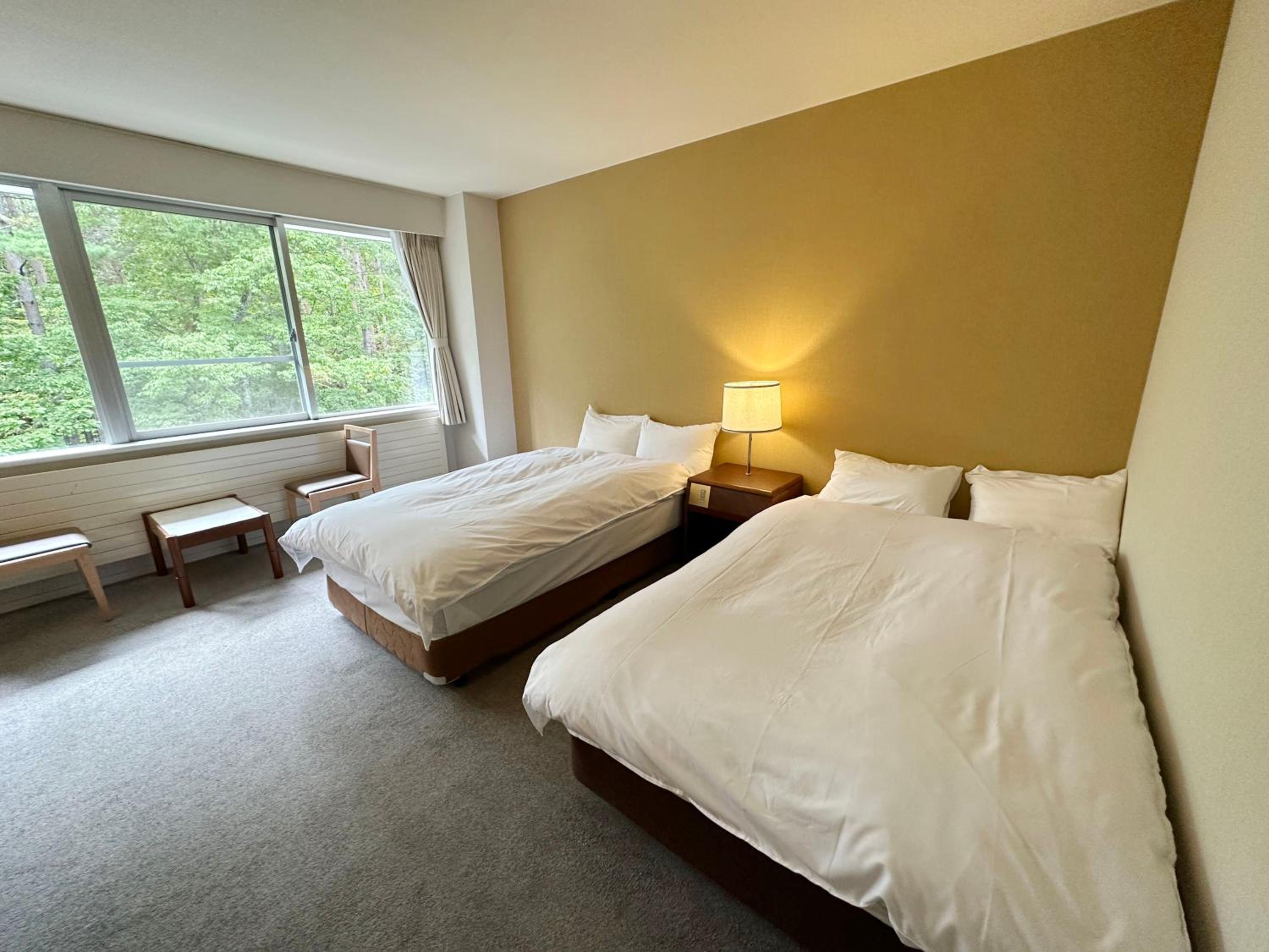 とても広く清潔で清掃の行き届いたお部屋で夫婦でに入った瞬間このお値段で信じられないねと話していました。とても静かで窓からは秋の色めいた森林が見え、とてもゆったりとした清々しい気持ちになり本当に快適でした。