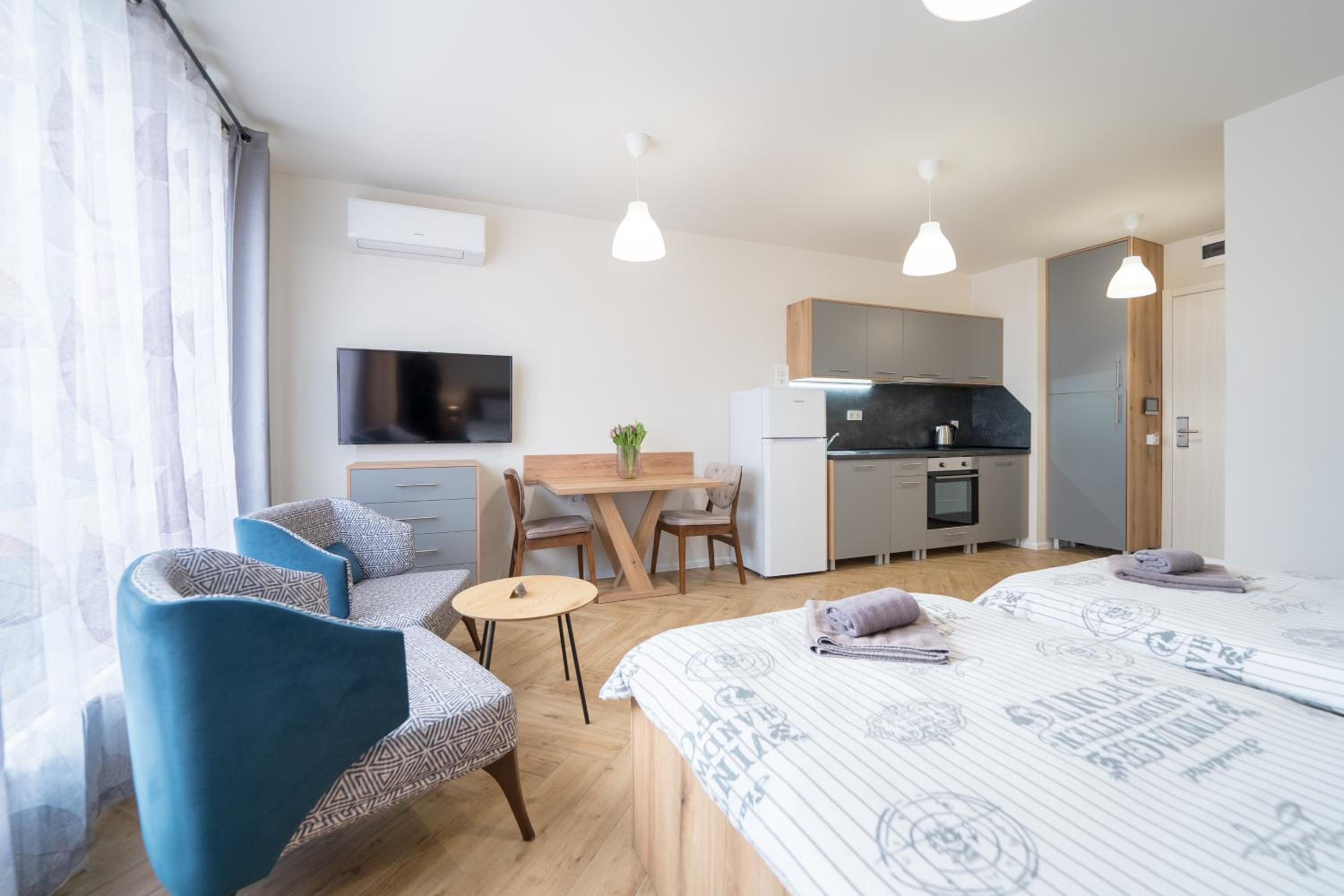 The property offers air-conditioned rooms with free WiFi, a fully equipped kitchen, a flat-screen TV, and a washing machine in each unit. Guests can also enjoy the convenience of a lift, full-day security, and luggage storage.