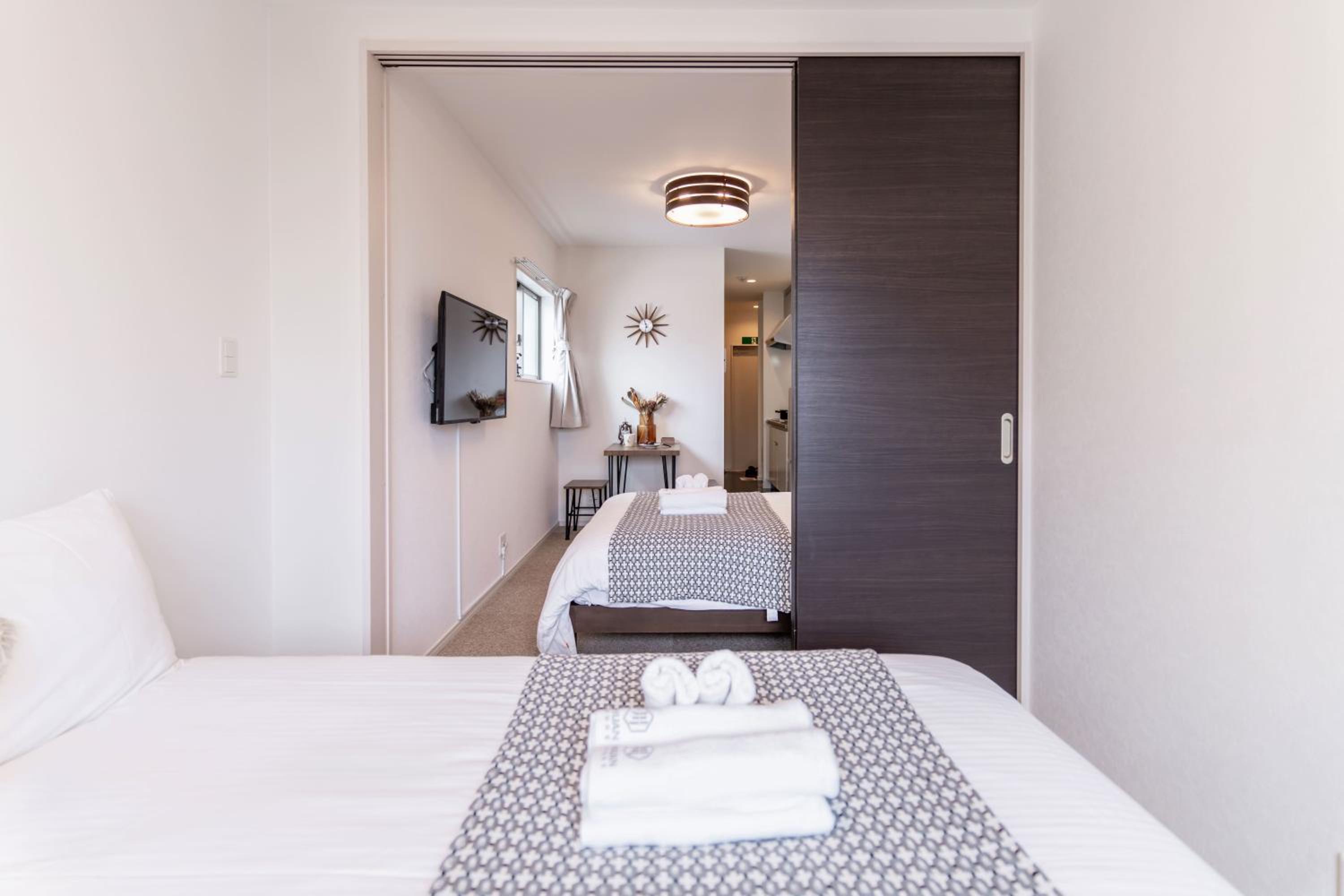 Has 2 single and a double bed which was great for our family with 2 teens. Enjoyed the Japanese style bathroom. The staff responses to messages were super efficient and friendly!!! Great supermarket and metro station in a short distance.