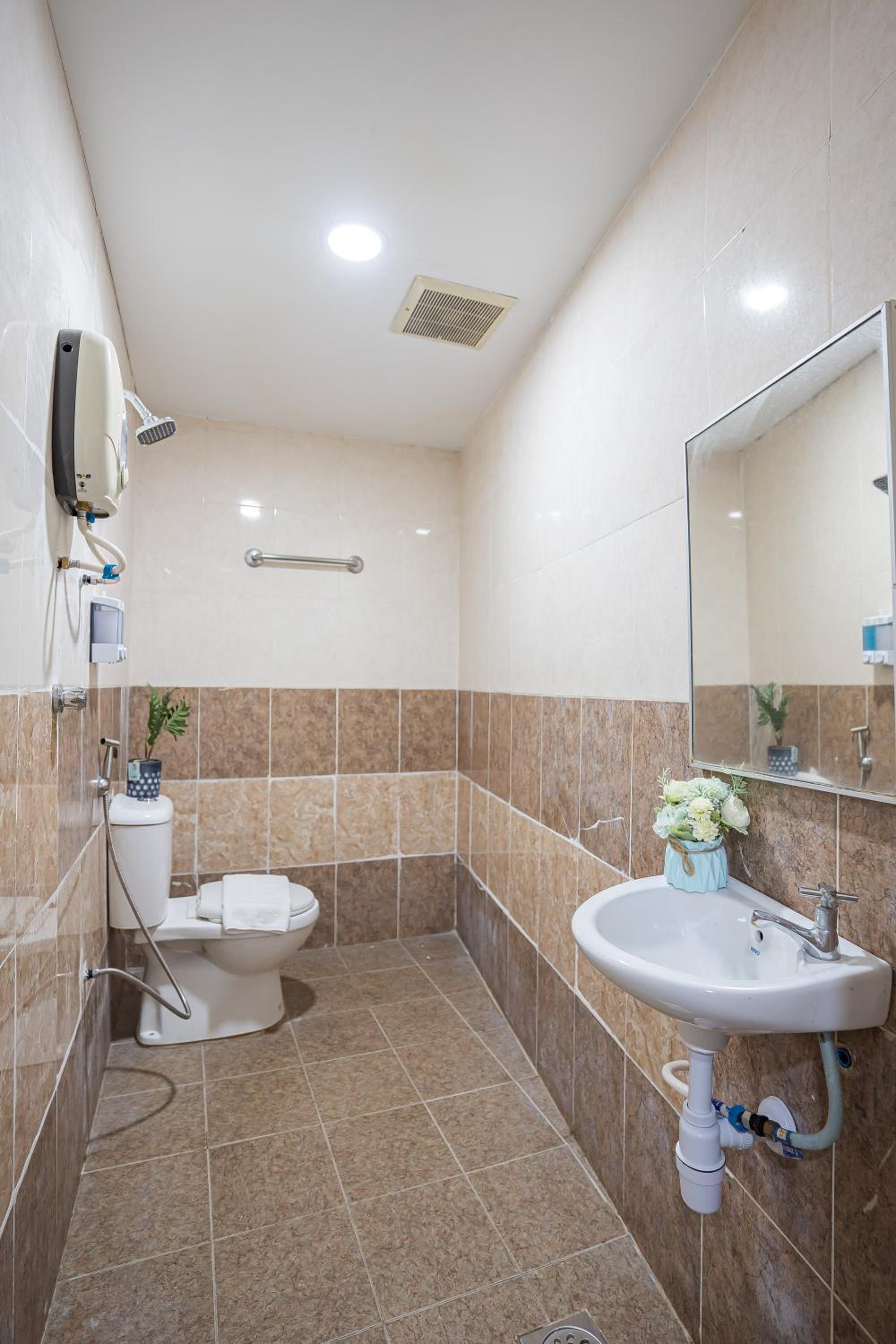 Shower & toilet area was 1 wet room. Water would splash everywhere. Toilet should be partitioned with a drawn shower curtain. The fittings within bathroom loosely fitted, with no toilet roll holder.