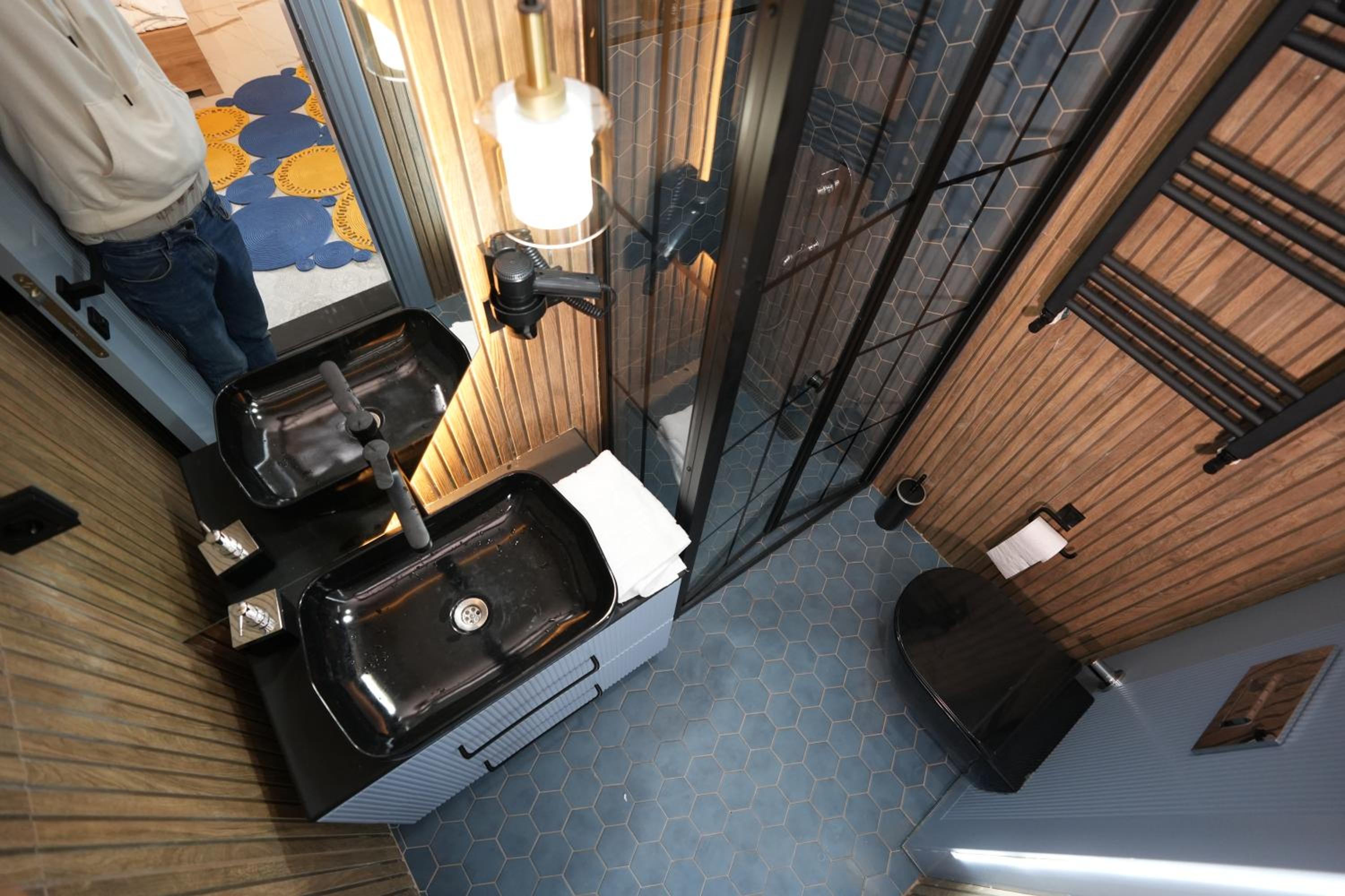 L’aération de la salle de bain faisait un bruit monstre. On n’a l’a pas allumé, on a utilisé la lumière du miroir.