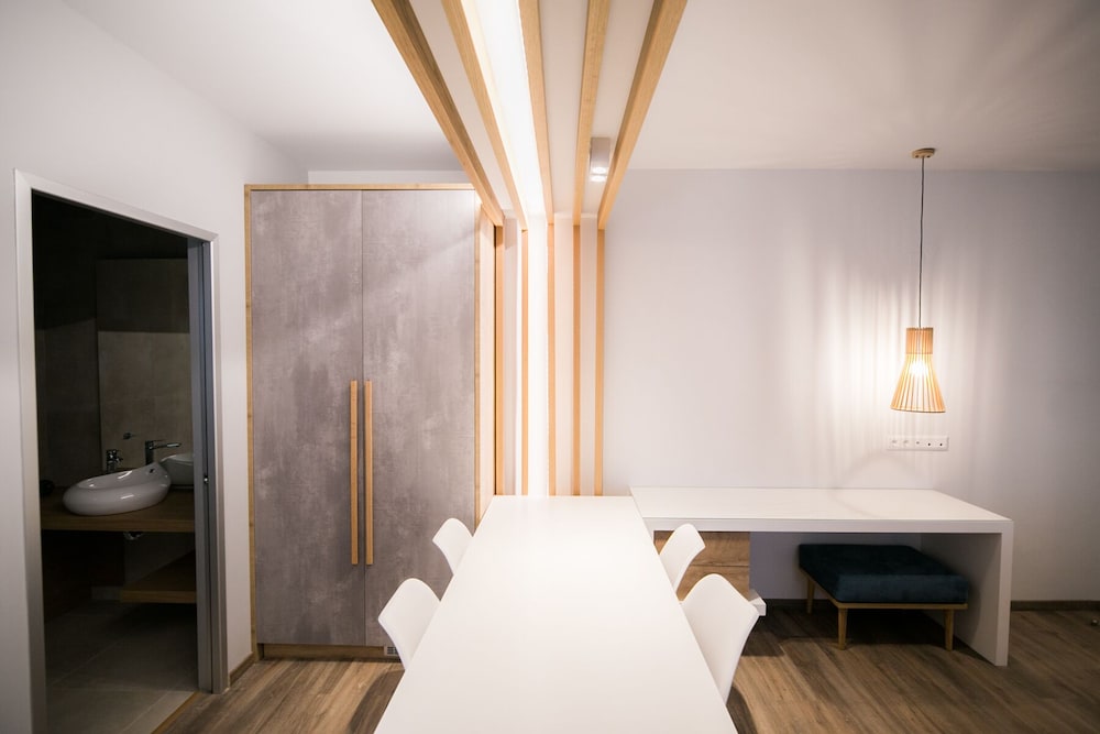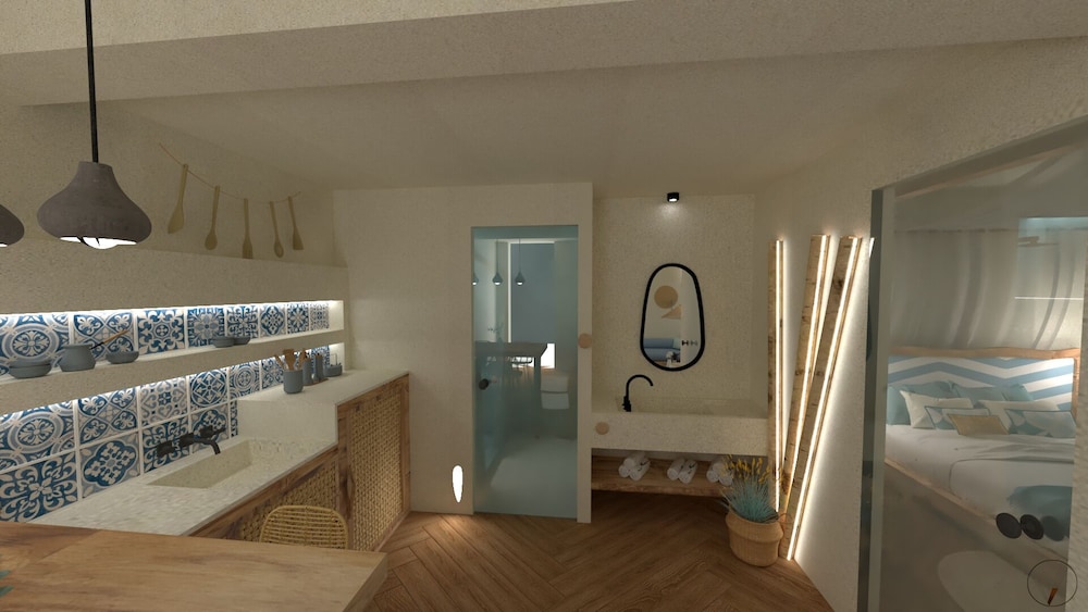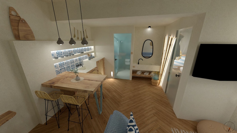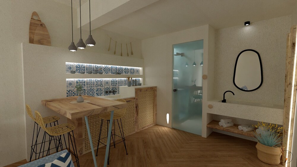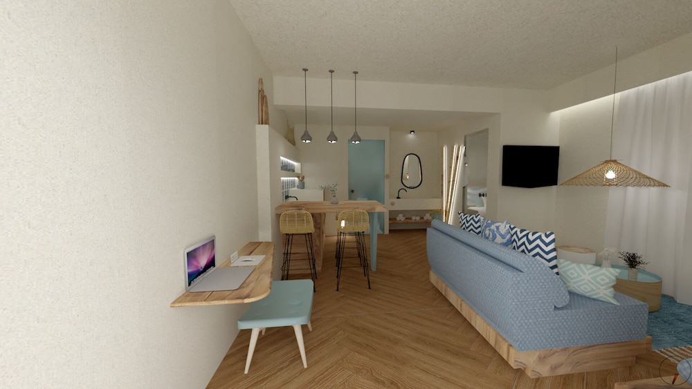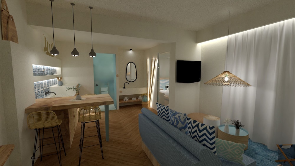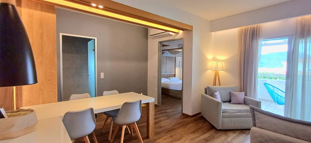 Beautiful location! The staff was amazing, so warm and kind and accomodating to our needs. They kept the place immaculately clean. The. Space was so enjoyable the view perfect. We did a lot of our own cooking and the kitchen area was well stocked with what we needed to cook with. The mattresses cold use an updating but other than that everything was perfect. We will definitely book again when we return to slopelos