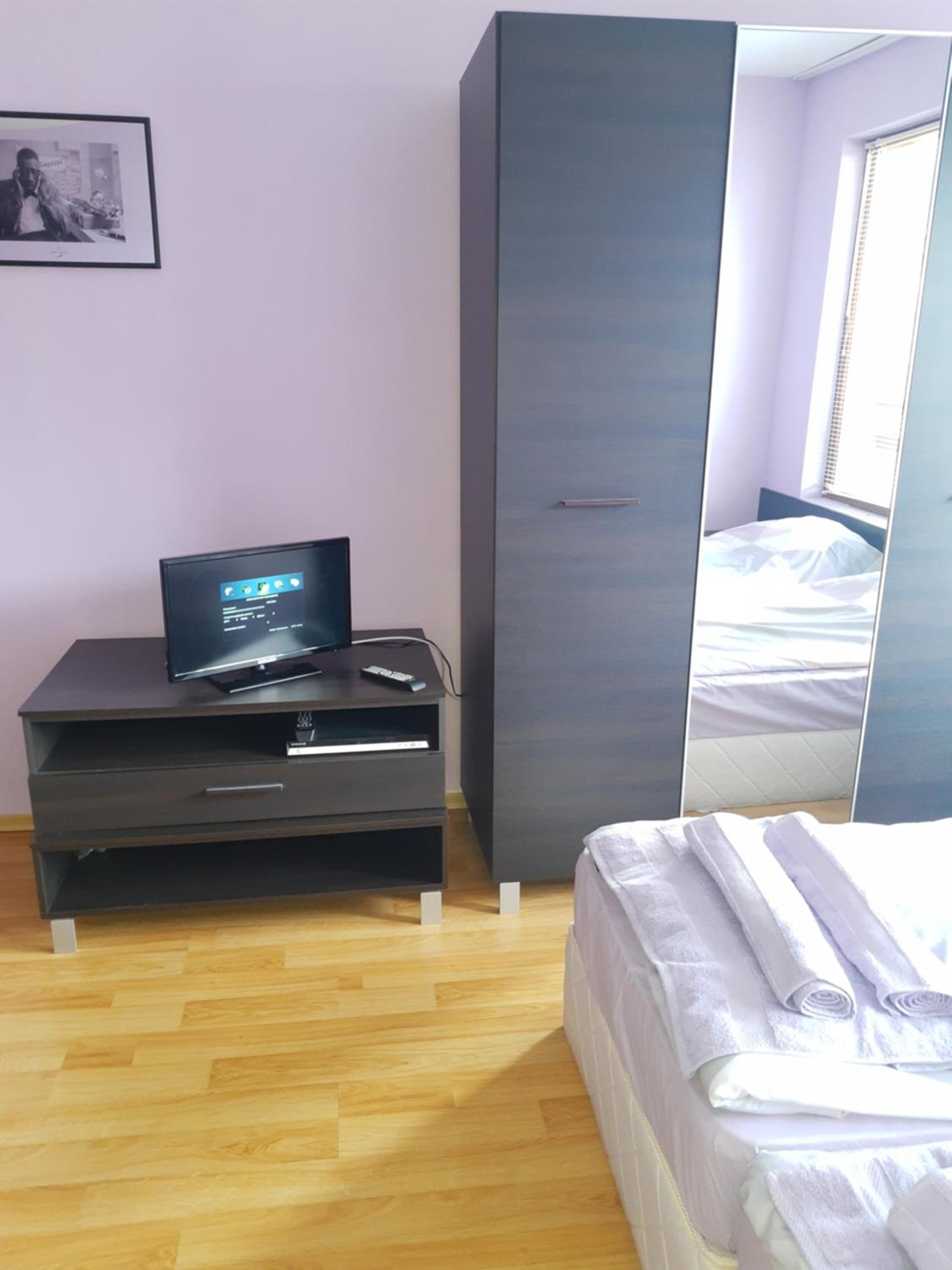 The sheets and towels were clean when we arrived, but when we wanted to replace them after a few days, they gave us dirty towels. When we complained, the receptionist told us that the towels were old and not dirty (he probably thought we were blind), and he also explained to us that "the owner of our apartment Mr. Kaloyan Nikolov didn't provide them with extra towels for his apartment, so they had to borrow towels from other apartments in the building to satisfy his guests". Whatever the reason was, they gave us clean towels after our complaintment.