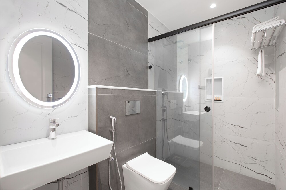 Relax in one of the 60 air-conditioned rooms with LED televisions, free Wi-Fi, and private bathrooms with rainfall showerheads and complimentary toiletries.
