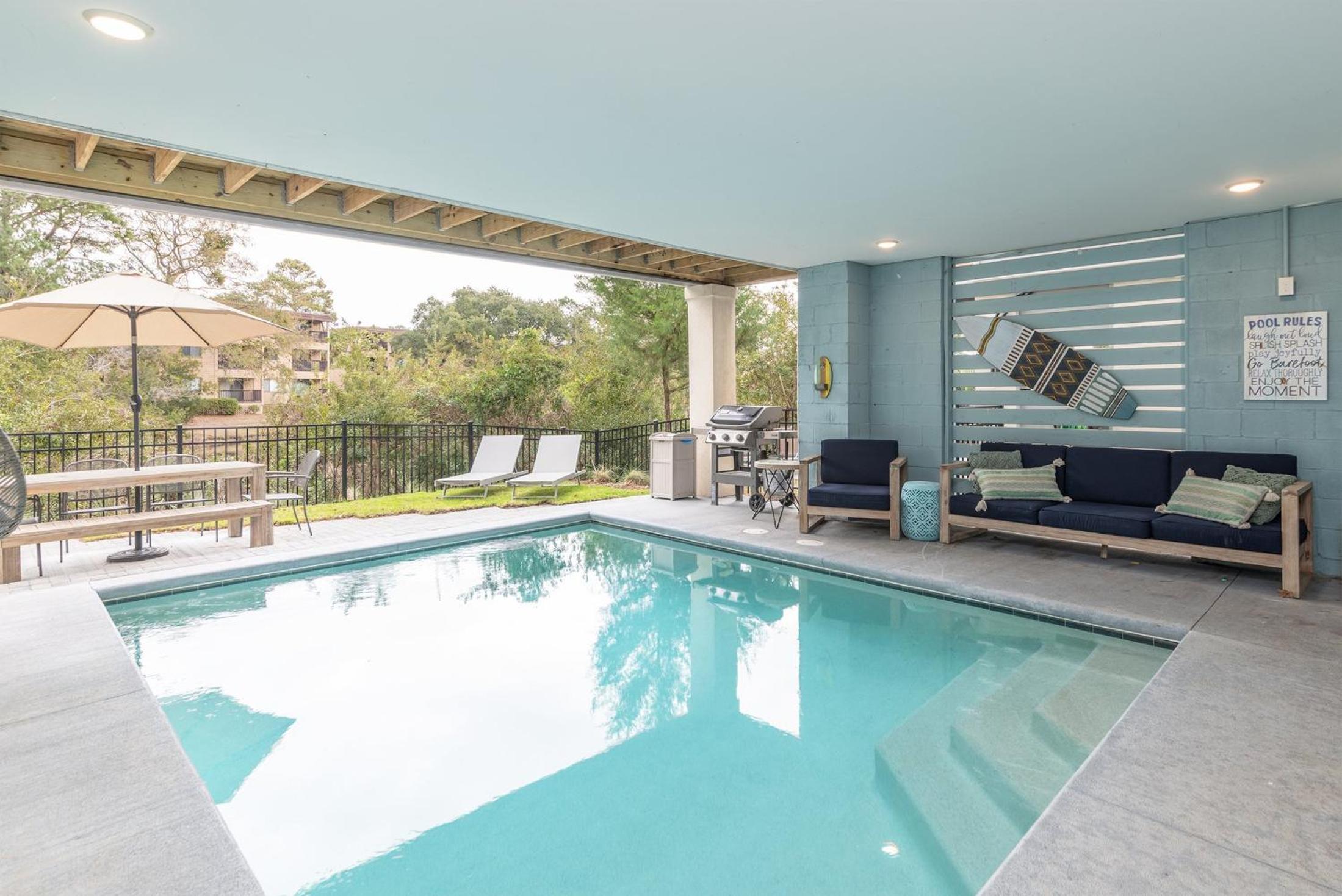 Indulge in our pet-friendly property featuring a private pool and beach access just steps away.