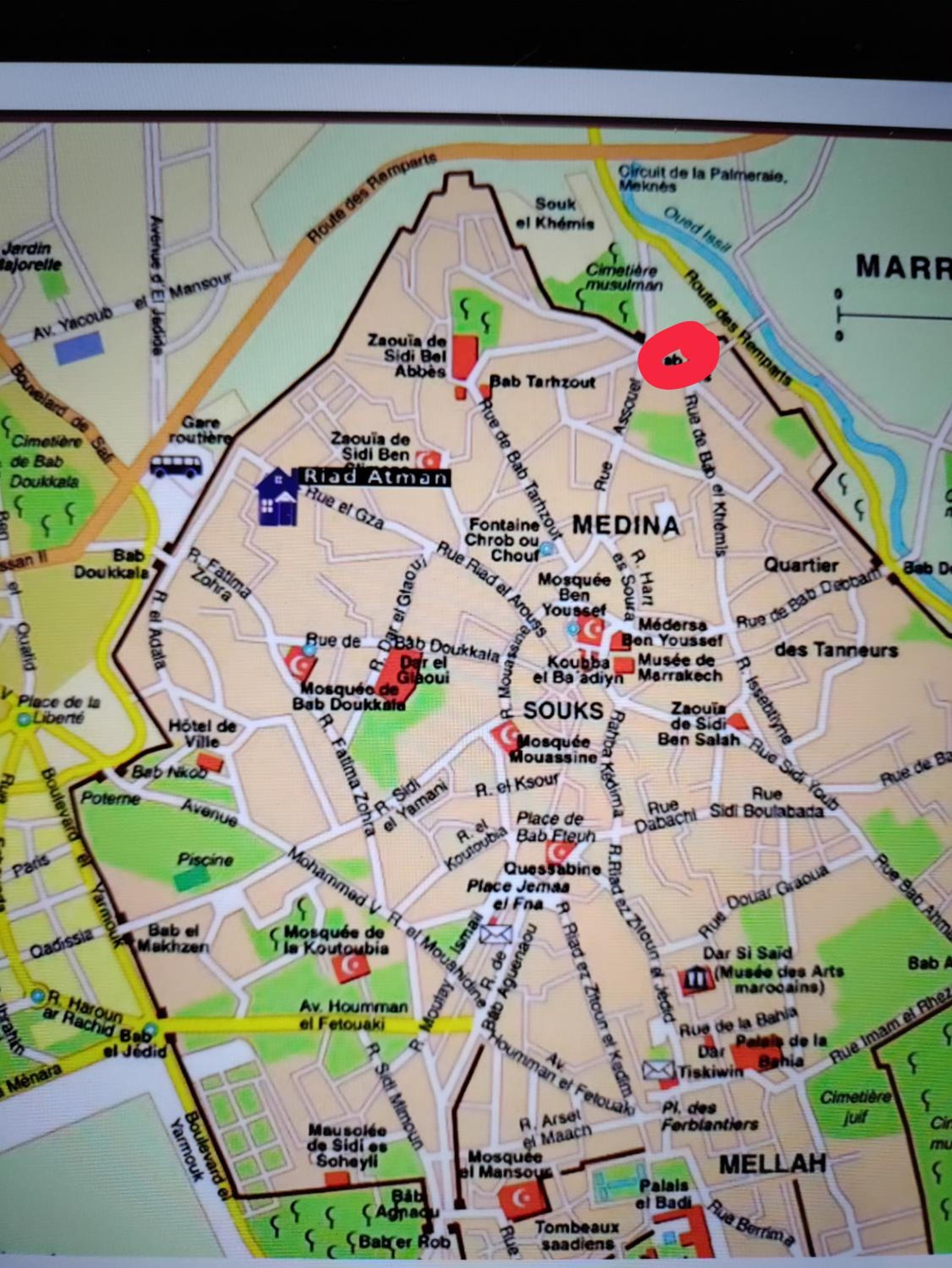 Room was freezing cold, moldy, there is nothing for warmth whatsoever. I had to insist with long discussions to get 2 extra blankets, not just one. The electronic key system (also for the room) is a hassle. My room didn’t lock, I had to message, then they sent Omar - a hassle. Yes, it’s inexpensive, but it’s not worth it. The place is very dark and freezing cold. Room felt like a cave. Noise from lots of other hotels along the alley, people coming and going (why don’t they fix the door?). Takes about 20-30min walking to get to where the touristy area of Marrakech starts. Place definitely needs renovation. Would not stay again, not even when it’s warm.