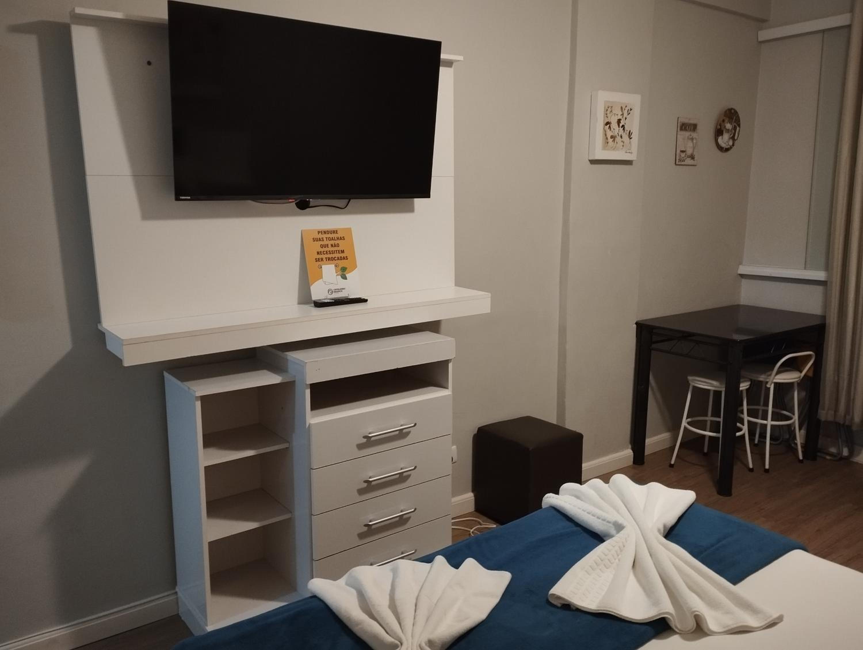O quarto tem toda a estrutura para uma estadia tranquila.