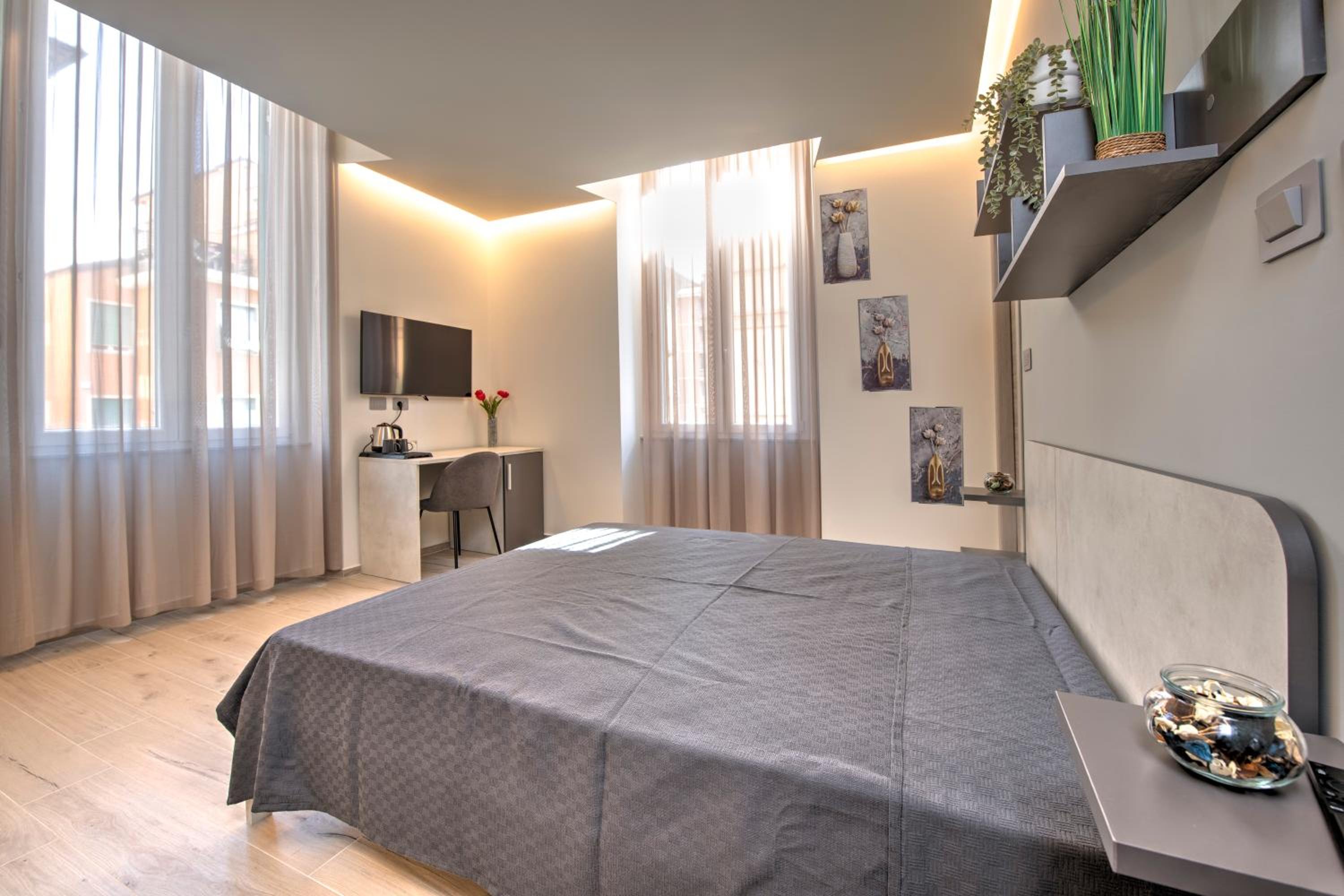 The apartment wasn't clean (bedsheets, glasses, mugs) and the nightstand was dusty. There were no bathroom accommodities (no travel size shower gel, shampoo or even toilet paper). Being in Italy where everyone drinks a lot of coffee and not having a coffee machine in the room seemed like a bad joke. We stayed 4 nights and had only one set of bathroom towels per person. Also, the internet is really bad - the wifi isn't always detectable and when it is the connection is really weak. In the last days the Smart TV wasn't Smart anymore because the internet connection was not working even tho we tried everything.