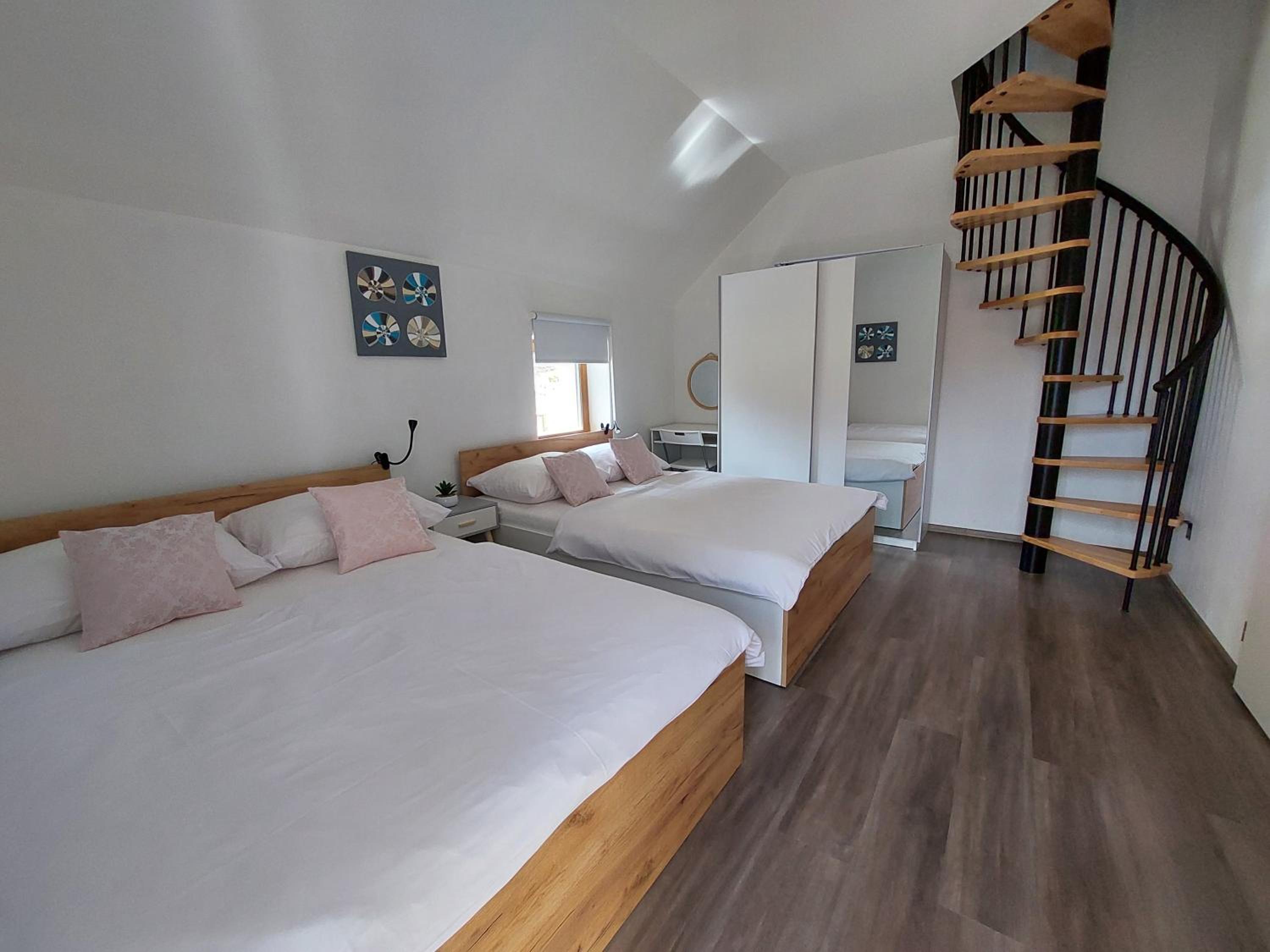 Die Wohnung war sehr sauber,sehr gemütlich und die Kinder haben sich besonders unter dem Dach gefreut,zu schlafen. Rund um die Gegend war sehr erholsam und ruhig. Alle waren nett und freundlich,wir kommen gern wieder und danken allen,die uns ein paar Tage Erholung geboten haben.