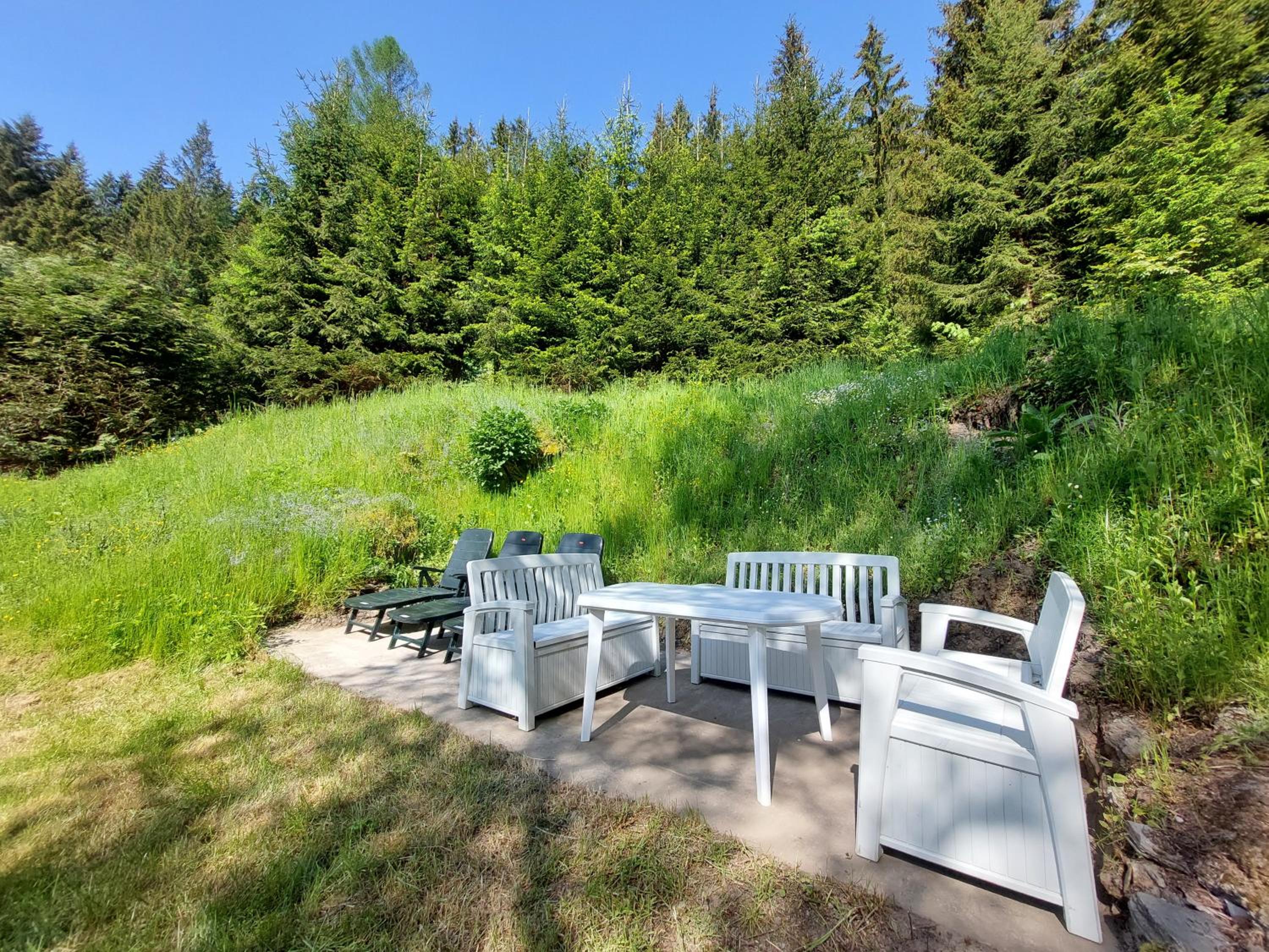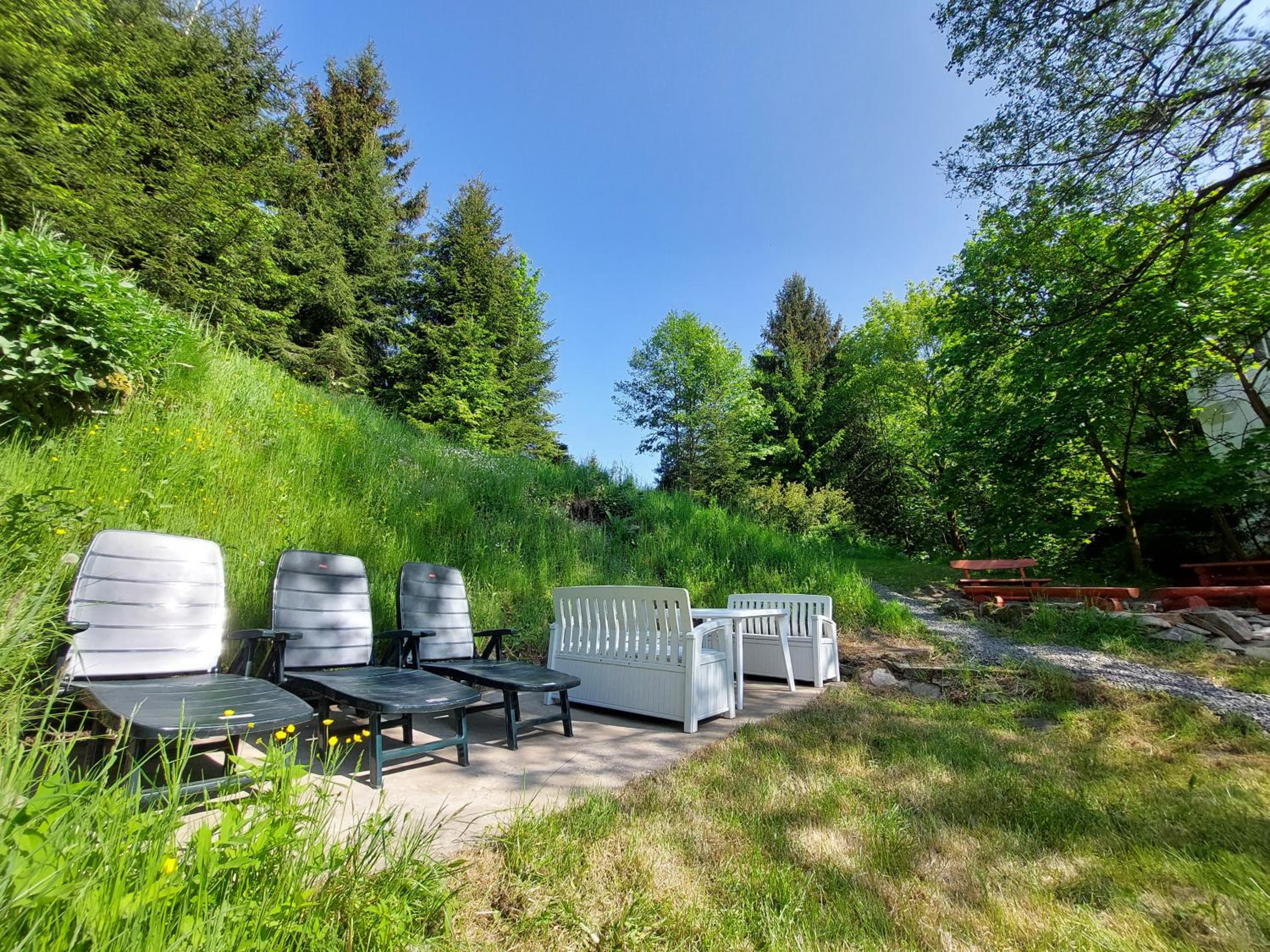 Die Terrasse zum Garten und zum Bach ausgerichtet. Die Sauberkeit😃Ausreichend Gläser/Geschirr und Töpfe. Fit, Lappen,Tabs für Geschirrspüler. Zweckmäßige Einrichtung. Digital gut regelbare Heizkörper. Sehr freundliche hilfsbereite Vermieter.