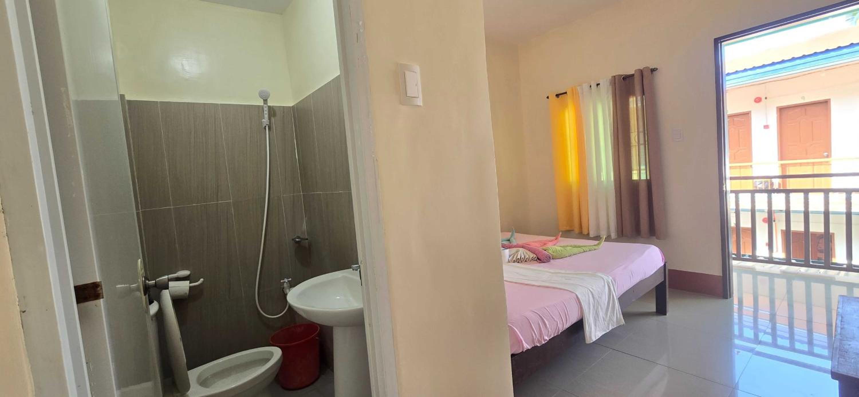 A good sized basic room with a fan and private bathroom and a balcony. Only a few minutes up a rough track, it is quiet yet close to local bars, shops and other amenities. Great value on a budget!